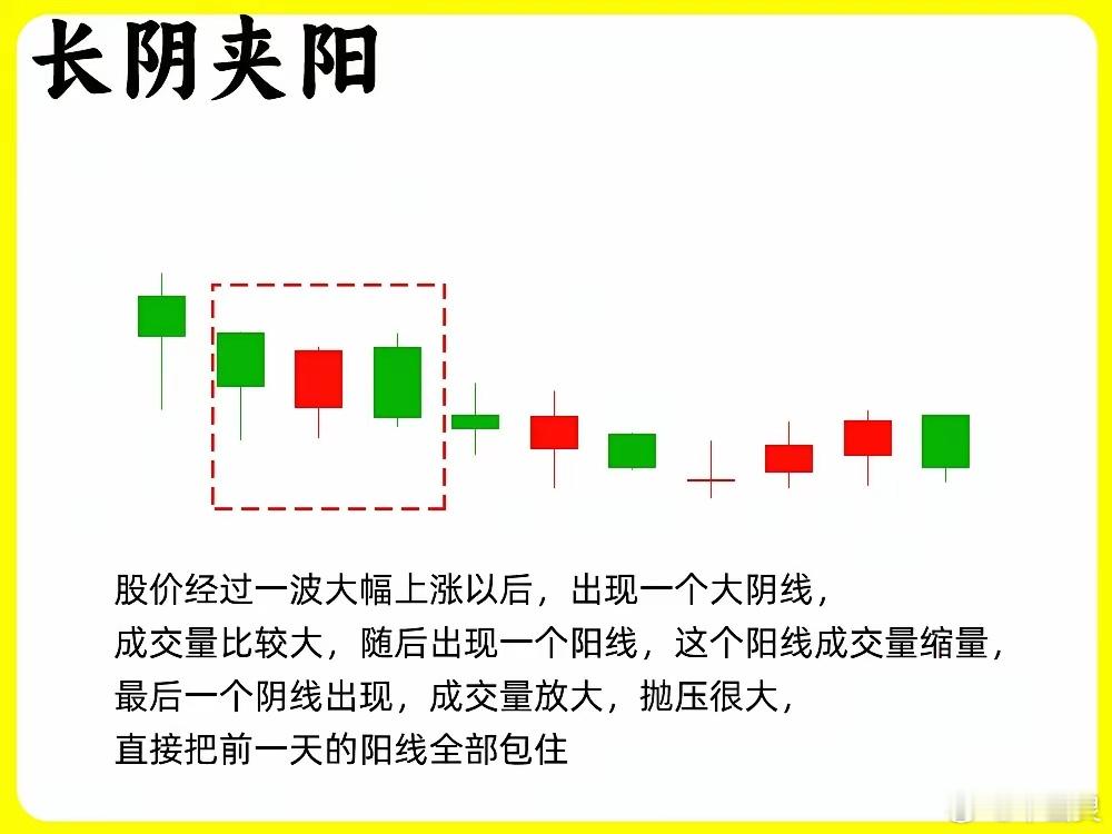 也叫空放炮,由三根K线组成,阴线+阳线+阴线走势。股价经过一波大幅上涨以后,出现一个大阴线,成交量比较大,随后出现一个阳线,这个阳线成交量缩量,最后一个阴线出现,成交量放大,抛压很大,直接把前一天的阳线全部包住。这形态里包含以下主力诱多的意思,主要就是能在高位出货的表现