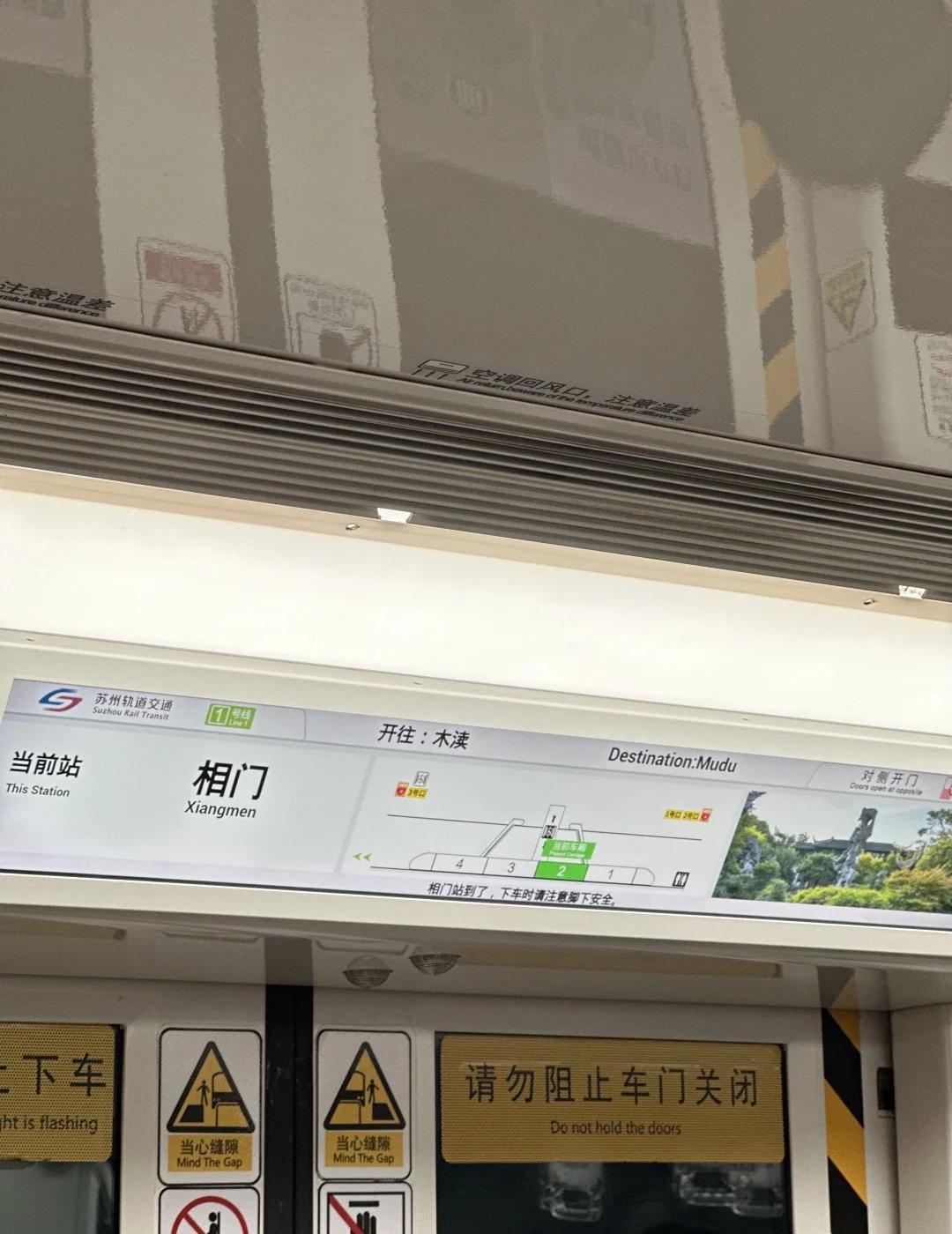 关于苏州地铁内的站台显示屏 一直觉得苏州地铁这个电子屏对于不熟悉苏州地铁,或者游客,很不友好,在行驶的时候是可以看站台的,但在到站开门直到门关上期间,都是无法看到完整的站台,个人认为是一个很大的bug,但不知道这样设计是否有别的原因。