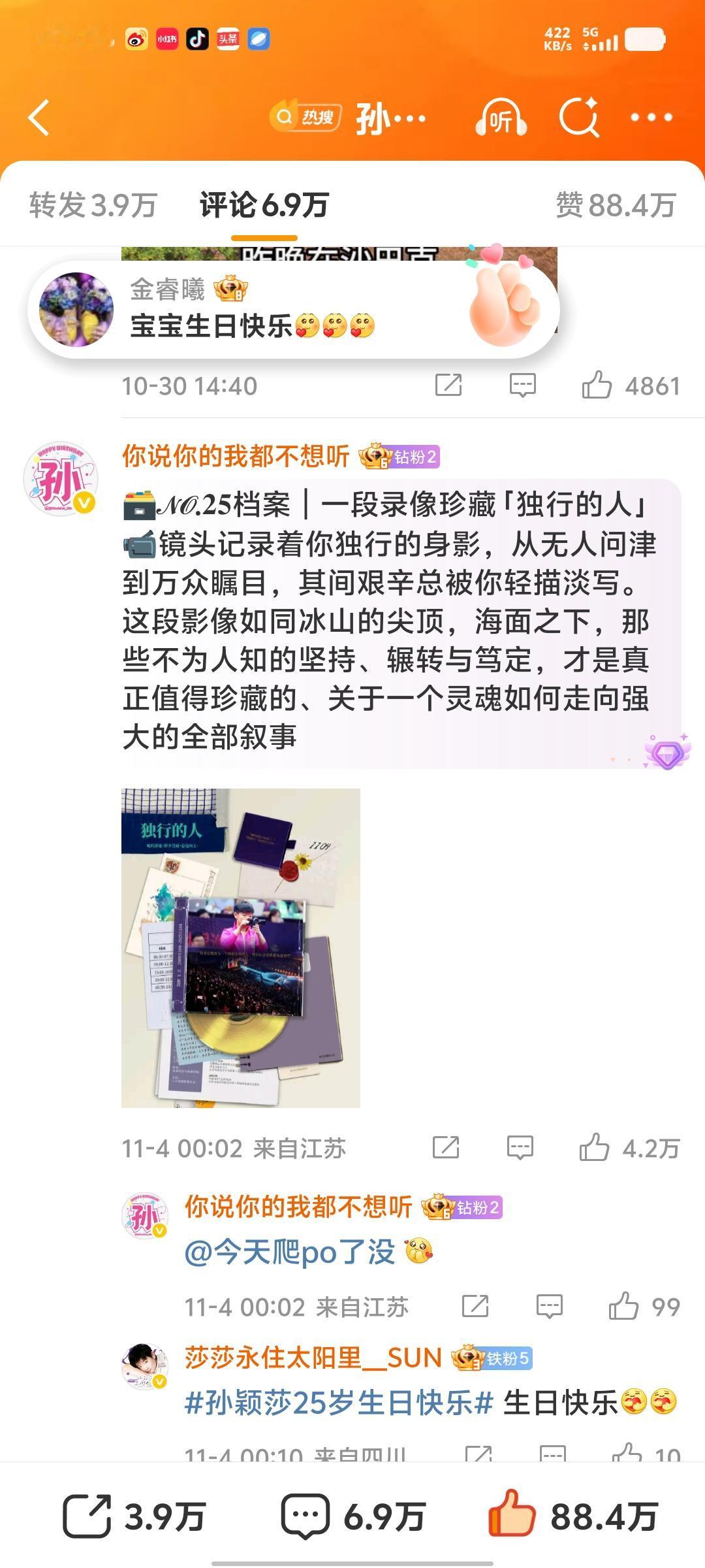 孙颖莎25岁生日排面拉满!25城地铁联动+母校客车庆生,粉丝控评摆图,正能量追星暖哭 孙颖莎的生日太有排面了。与之对应的啥25岁生日快乐。这些大作为图像整齐排列。 这都是粉丝们自发有序的送上生日祝福,并控制好点赞量和评分,才能保证这些图像排列有序。 这份生日祝福太珍贵了。这也是娱乐圈粉丝的追星手法,现在放在体育运动员身上。 这也正是莎莎身上正能量的表现。好多人不去追娱乐明星,变成追体育明星。 尤其是对青少年的正能量影响不可估量。全球各地铁联动,为莎莎庆生,25座城市。 河北石家庄有一趟客车路过莎莎的母校,全程为莎莎庆生。还有裸眼3d的投屏。很多地方的广告牌,商场也被包下来。 这两天一直在全国联动。虽然莎莎本人还在训练场里挥拍如雨。的粉丝们庆祝三四天。 这次温暖又令人感动的画面,这就是爱和双向的奔赴。
