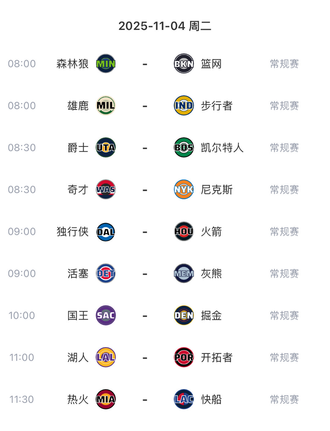 今日全部比赛