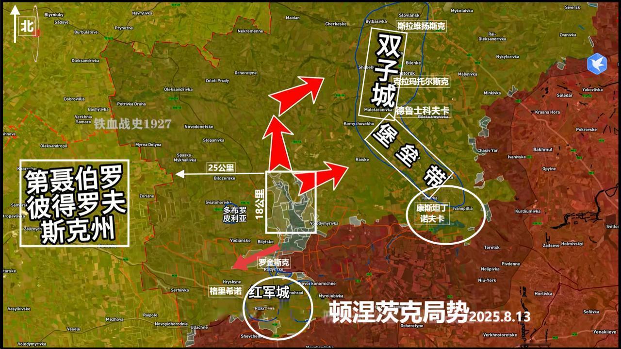 俄军正在收紧红军城的包围圈,特种作战小组正在清剿红军城内的乌军残余。 但同时,俄军攻击另一座堡垒城市康斯坦丁诺夫卡的行动一刻也不曾停止。 康斯坦丁诺夫卡位于红军城的东北方向,距离大约50公里。 红军城战役结束后,俄军进攻重点方向有几种可能:向西攻击第聂伯彼得罗夫斯克州;向北攻击双子城和康斯坦丁诺夫卡。 康斯坦丁诺夫卡现在的形势很类似于前几个月的红军城,已经被三面被包围,只留下西北方向一个缺口,现在的乌军在康斯坦丁诺夫卡仍能获得补给和兵员轮换,但几乎所有公路都处于俄军的炮火和无人机打击之下。 康斯坦丁诺夫卡一定会成为俄军的下一个目标的,其命运早已注定。