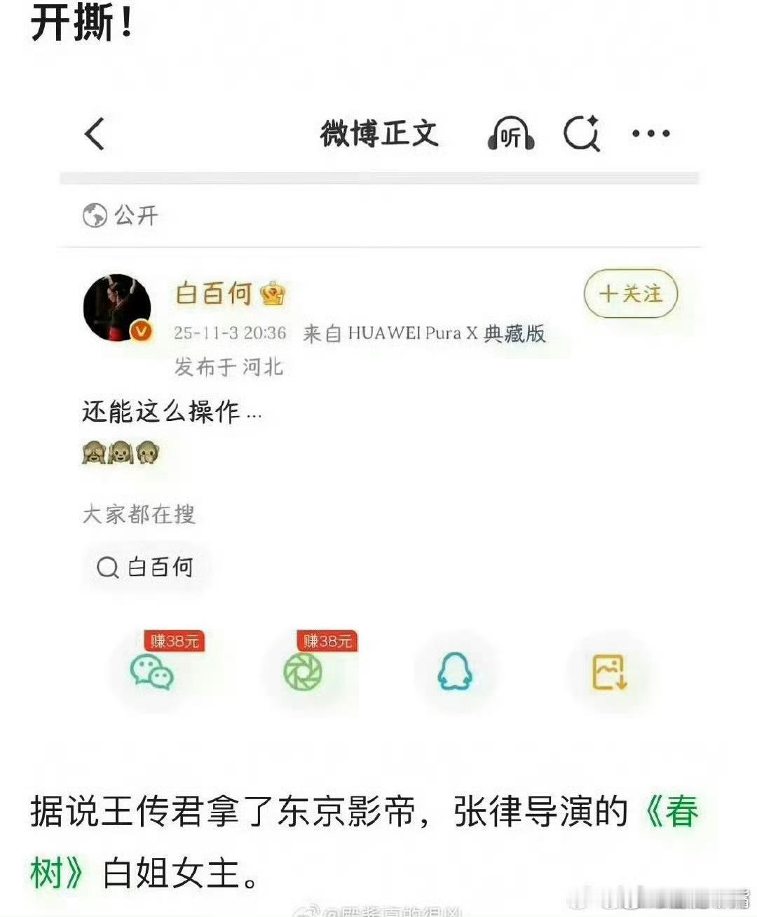 白百何还能这么操作谣言!全是谣言!还没出结果呢!大家都别着急,出结果了再开撕也
