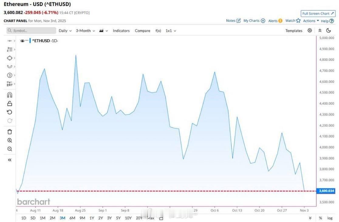 【代币网络协议遭黑客攻击,周一以太坊暴跌】周一以太币一度下跌9%,跌破3600美元的关键支撑位,较8月22日创下的4885美元高点下跌了约25%。以太坊暴跌前,基于以太坊的去中心化金融协议Balancer在一次黑客攻击中损失了可能超过1亿美元。这一漏洞是过去几周一系列看跌事件中的最新一起,这些事件让数字资产投资者提心吊胆。一些与数字资产相关的股票也面临压力,Coinbase跌近4%,Strategy下跌超过1%。