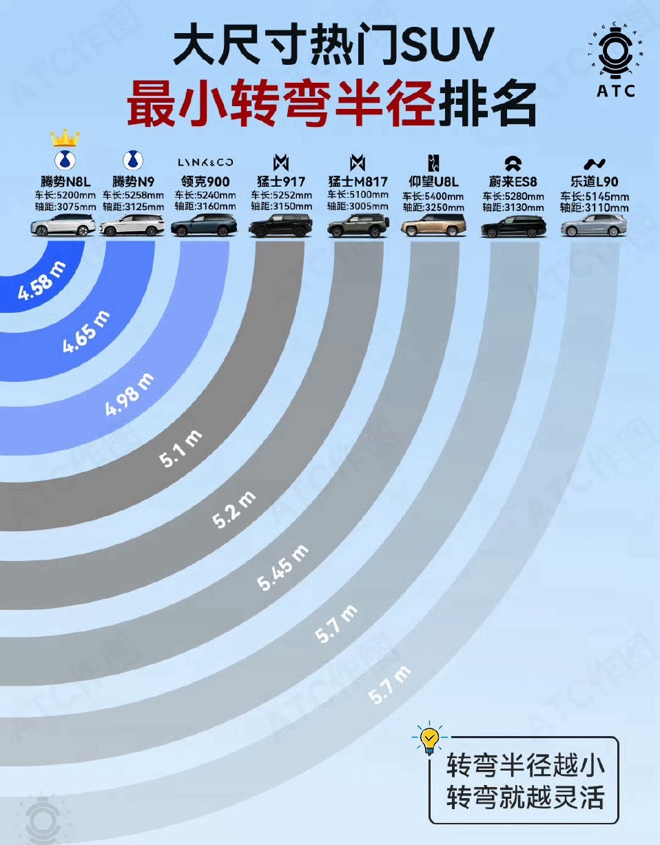 图1: 腾势N8L的转弯半径跟一辆A0级小车一样。