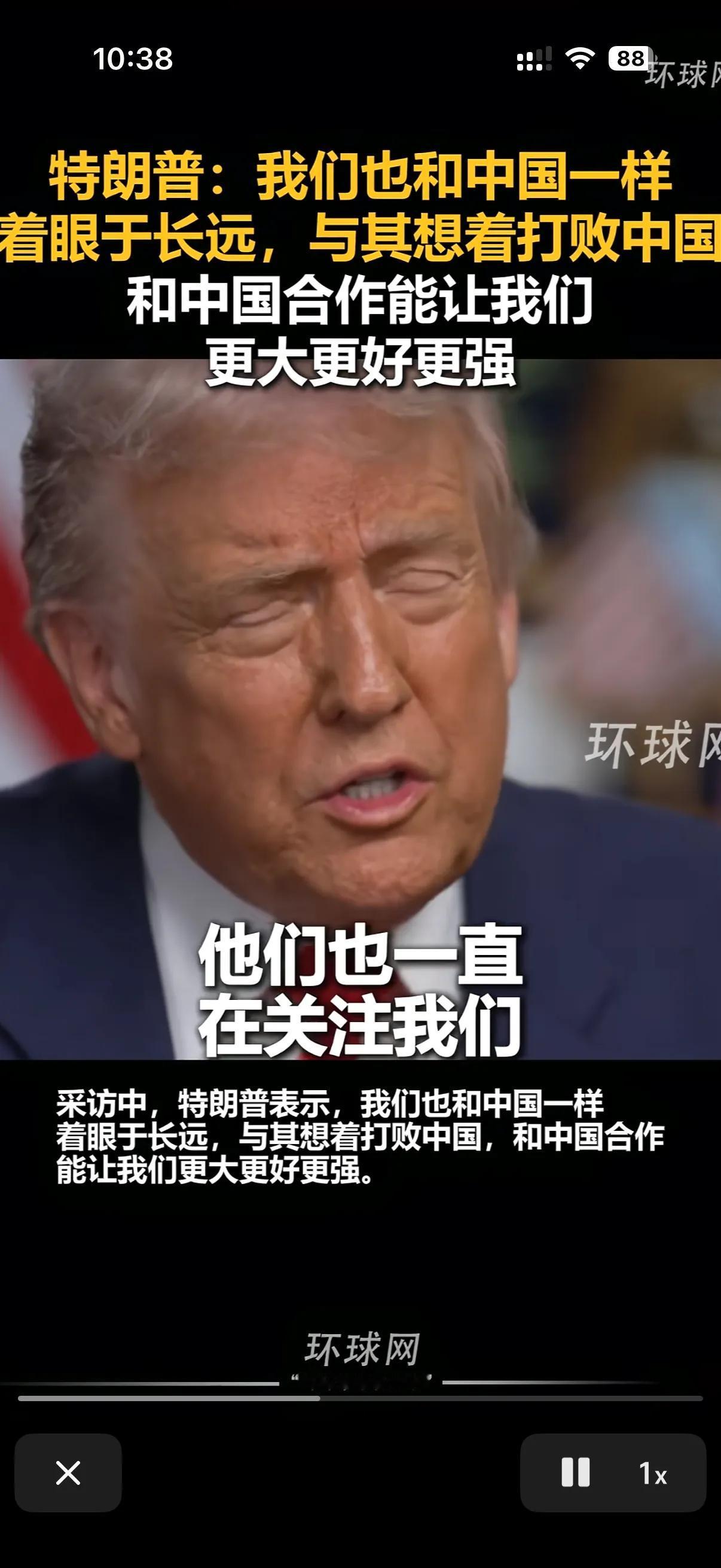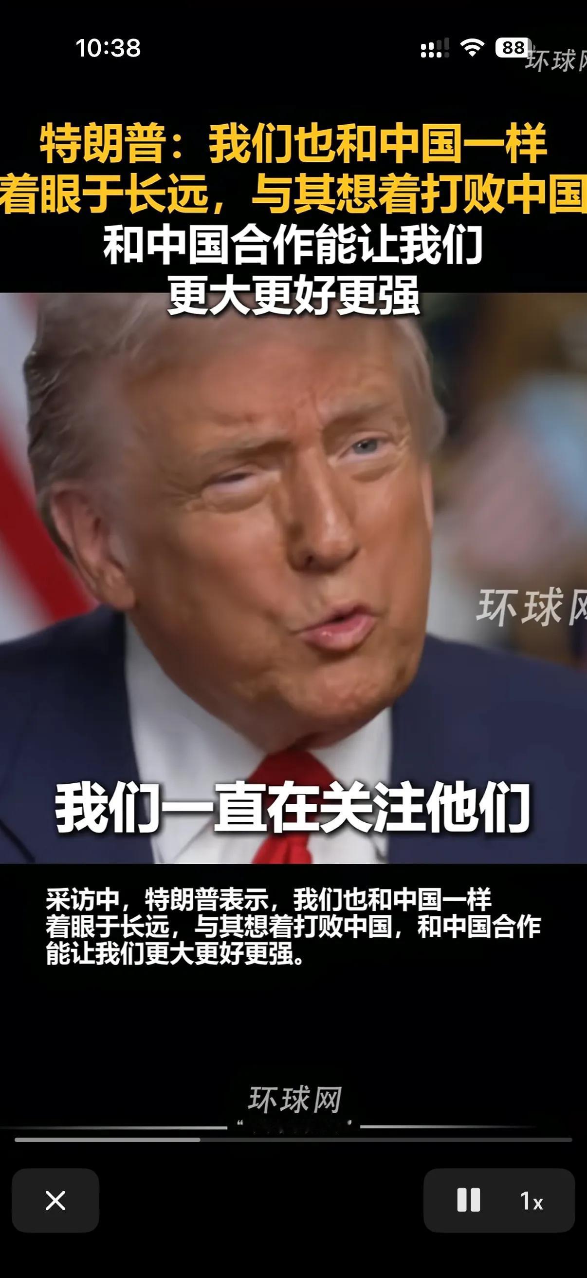 特朗普说和中国合作比对抗有前途! 就在不久前特朗普发表讲话称,自己一直都在关注中国! 称中美之间其实一直以来相处的都很好,尤其是自己领导下的美国,更是一直都是希望合作的! 中国和美国都是大国。 中美合作后能变得更加的强大和出色! 这以后特朗普要加深中国和美国的合作,前一阵一些国家着急忙慌的跳出来向美国表示忠诚又是要制裁中国企业,又是对中国企业强制接管的! 现在下不来台了吧!