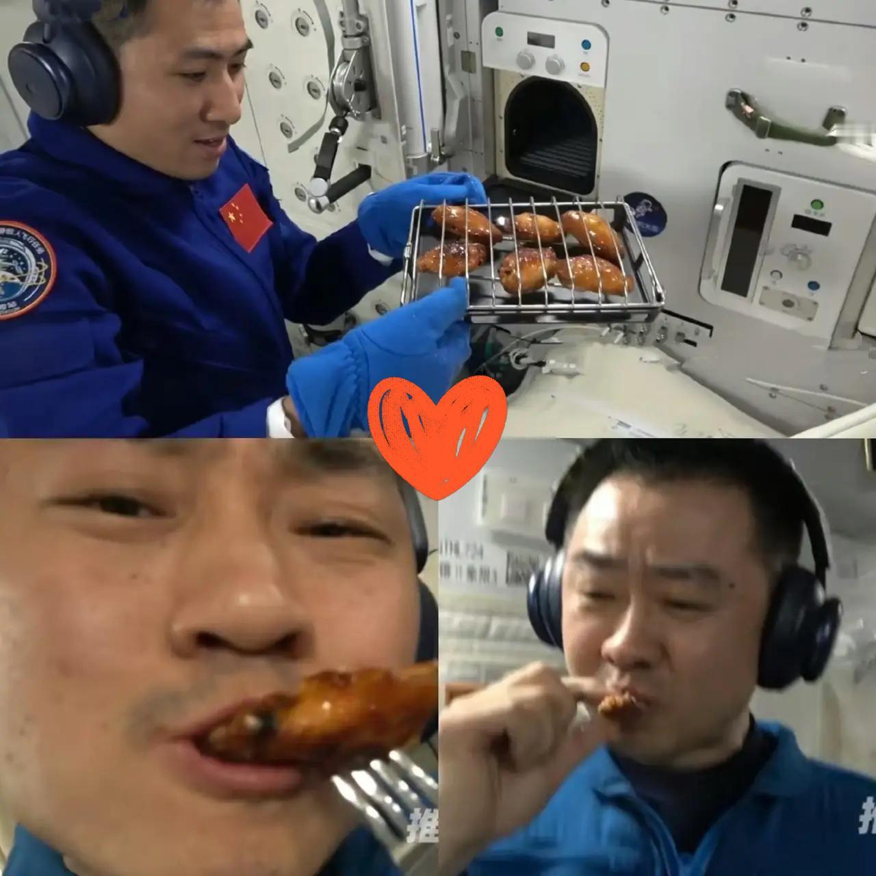 这下出名了, 不仅我囯,连全世界都知道了, 宇航员们不仅太空会晤,还集组织一场太空烧烤派对,烤上鸡翅了。 家人们,刷到中国航天员在太空开烧烤派对的新闻时,我直接笑出鹅叫!别人还在纠结太空饼干烤没烤熟,咱们直接把鸡翅架上了,镜头里那油光锃亮的样子,连地面工作人员都忍不住喊“想吃”,这才是种花家的浪漫吧! 别觉得这只是“吃货整活”,能在失重环境里把鸡翅烤得均匀,背后藏着的可是硬核科技——温度控制、食材保鲜、甚至油烟处理,哪一样不是航天实力的体现?这哪是吃烧烤,分明是用“烟火气”证明咱们的太空生活有多接地气。 现在满脑子都在想,下次能不能安排个太空烤鸭?毕竟“煮熟的鸭子会不会飞”这事儿,也就中国航天能给答案了。