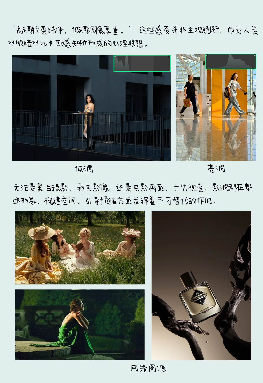 无论是 “高调轻盈纯净”“低调沉稳厚重” 的风格,还是黑白彩色,还是电影广告,影调在塑造风格、强化主题表达中发挥重要作用。