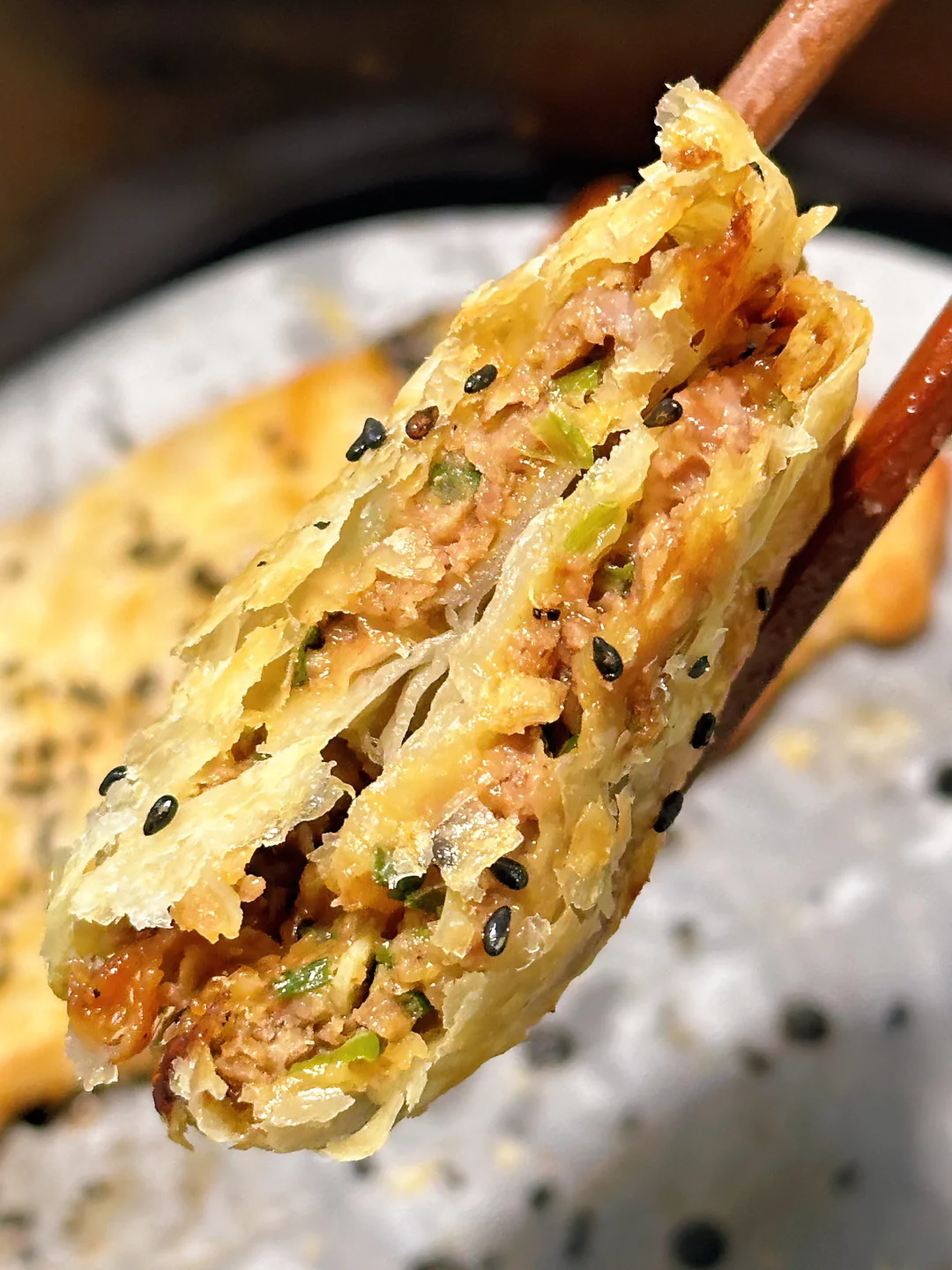 姐妹们,鲜肉锅盔,咬一口酥脆掉渣,不用揉面、擀面,有手抓饼就可以做~做法也超级简单,又酥又脆,薄薄的肉馅混合淡淡的葱花香,大人小孩全家都爱吃,刚出炉小朋友一口气吃1个,酥到掉渣~做法简单,想失败都难!姐妹们快去试试吧~