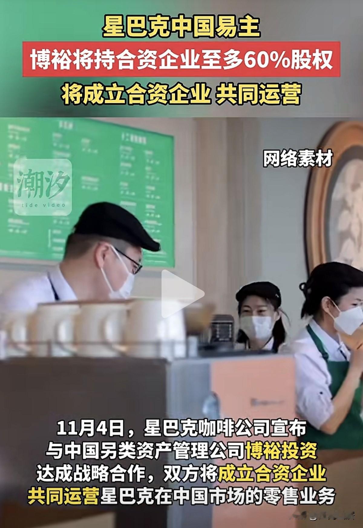 网传许久的“星巴克中国易主”也在今日迎来了官宣。刚刚,星巴克咖啡公司宣布将与资产管理公司博裕资本达成战略合作,双方将成立合资企业,共同运营星巴克在中国市场的零售业务。 根据协议条款,博裕将向星巴克支付约40亿美元,以获得合资企业最多60%的股份。 而星巴克保留40%股权,并将继续作为星巴克品牌与知识产权的所有者和授权方,向新成立的合资企业进行授权。 星巴克表示,其中国零售业务估值预计将超过130亿美元,这一估值包括交易所得款项、公司剩余的40%股权,以及未来十年授权费的预期价值。 来源:台州晚报
