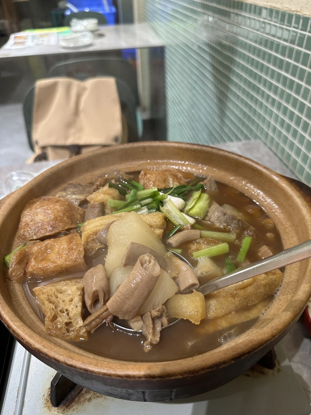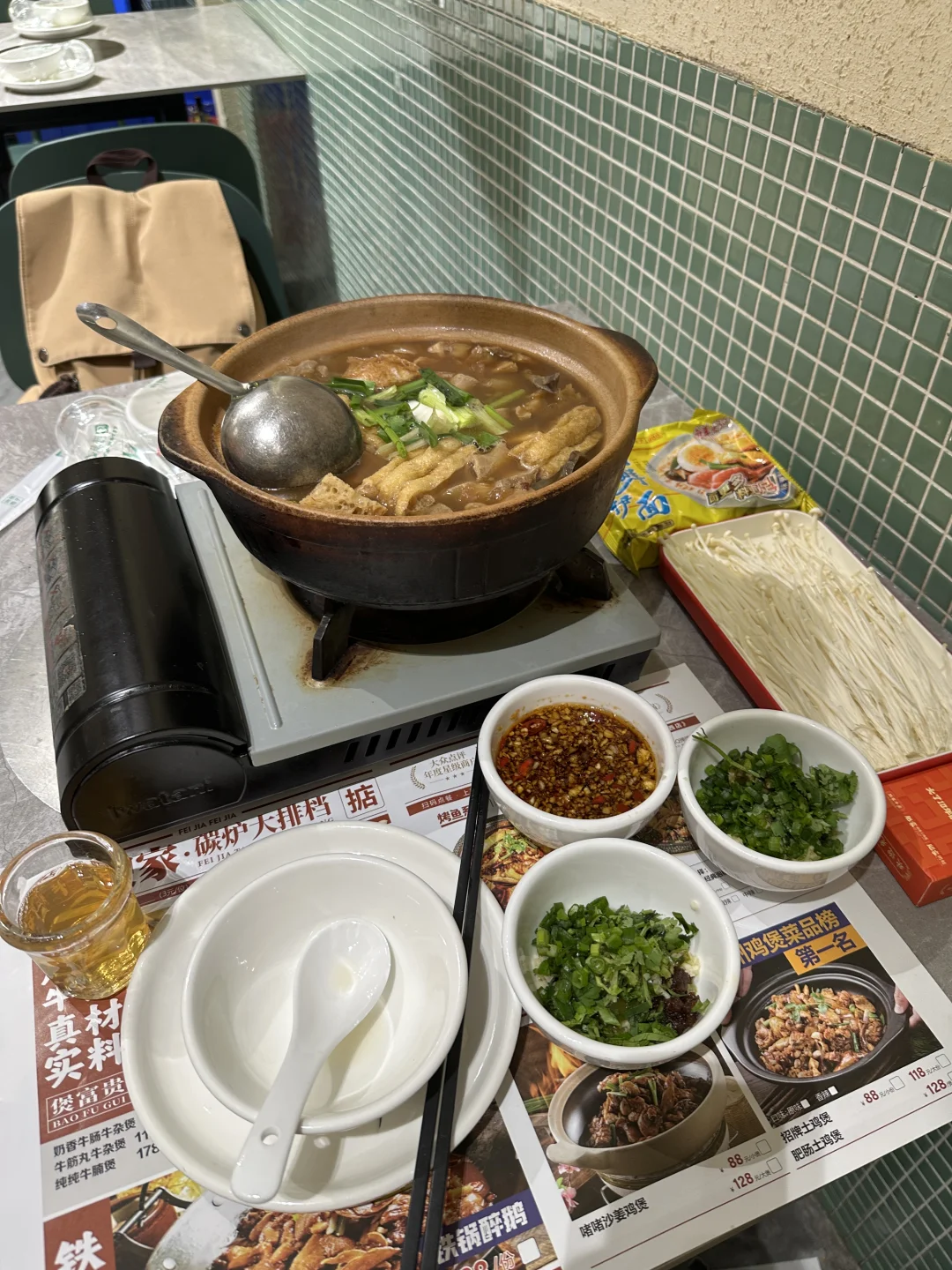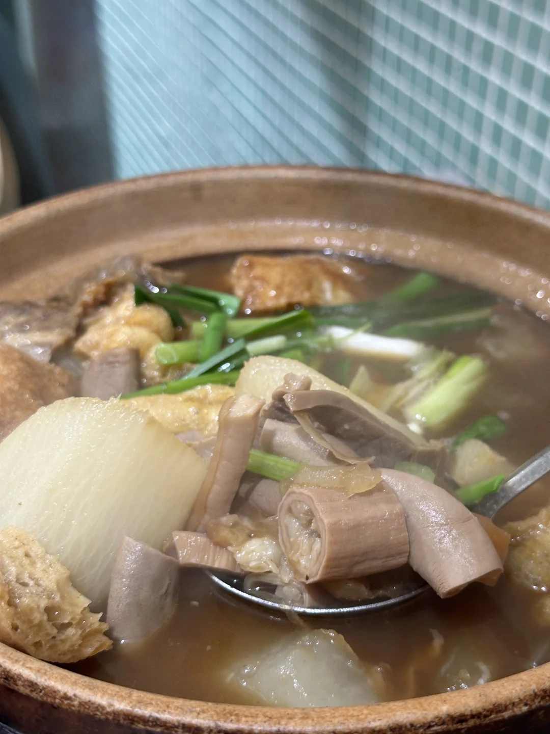 店面藏在小区巷子里,不算大但超有烟火气,刚坐下就听见邻桌说“每周都来,他家牛杂熬得比家里还香”。我直接点了招牌砂锅牛杂煲套餐,没等多久,店员就端着冒热气的砂锅过来,刚放桌上就闻到浓得化不开的卤香,瞬间咽了口口水✨