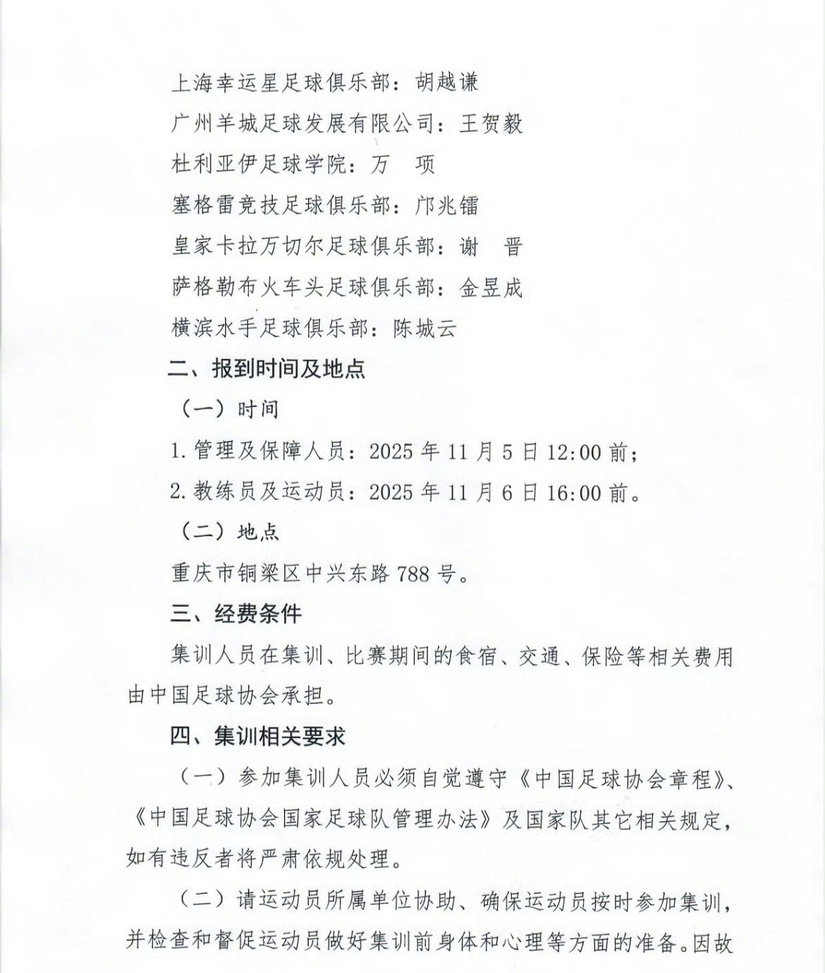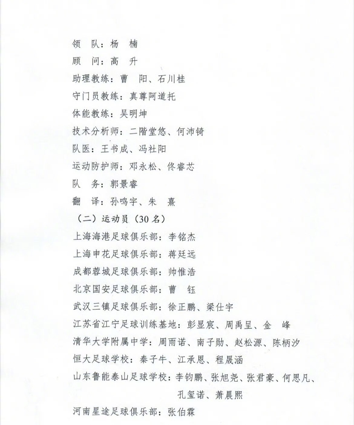 中国足协公布新一期U16国足集训30人国足[超话] 名单,万项、邝兆镭、谢晋入选。