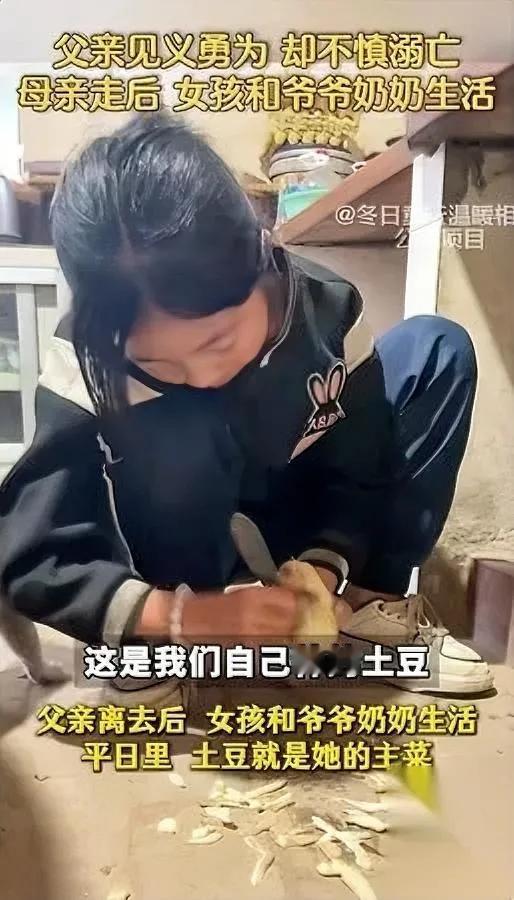 破防了!女孩竟说这是美味 第三句让人心揪:她的日常太扎心 志愿者走进破旧小屋时,女孩正蹲在灶台边削土豆。父亲因见义勇为溺亡,母亲承受不住压力离开,她只能和爷爷奶奶相依为命。当被问起“吃过最好吃的东西”,女孩眼睛亮了亮:“方便面!”那是邻居偶尔送的,她觉得比过年的肉还香。 更让人心酸的是,她的衣服已洗得发白,“穿了三年,生日时叔叔会买新的”;袜子破了洞也舍不得扔,“要等到下一个生日”。可这个小女孩,每天抢着做家务,给爷爷捶背,深夜在昏黄台灯下刷题。她说:“读书是我唯一的出路。” 有人说“见义勇为前该想想家人”,但我更感慨:当我们抱怨饭菜不可口、衣服不够时尚时,这个女孩却把“苦难”嚼出了回甘。方便面、旧衣服、破袜子,在她眼里都是生活的馈赠,因为她懂得:比起失去,拥有的爱更珍贵。 这世界总有角落被阳光遗忘,但总有人在努力发光。如果可以,多给这样的孩子一些温暖吧。你愿意为她的坚强点个赞吗?或许你的一次转发,就能让她知道:人间值得,未来可期。