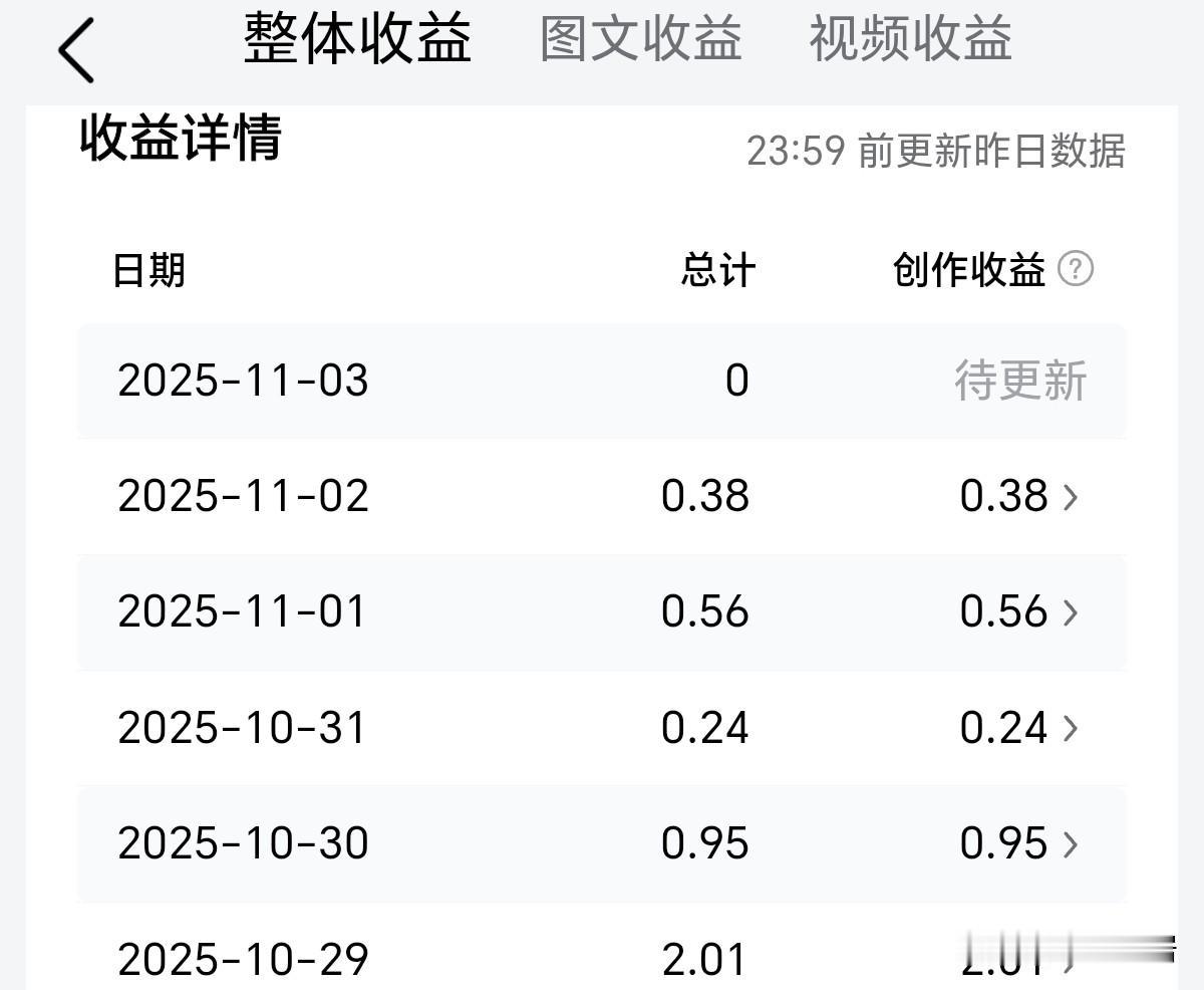 近一个月来,我这个账号流量好像已经跌入谷底了。每天都只有几千的阅读量,昨天更是跌破一千大关,阅读量低至810,不知道能否触底反弹。经历过单个作品,130多万的阅读播放量,几万,十几万,几十万的阅读量。然后现在渐渐的往下探底,也不知道应该怎么调整。期待作品回调之后,阅读量能够回暖吧。