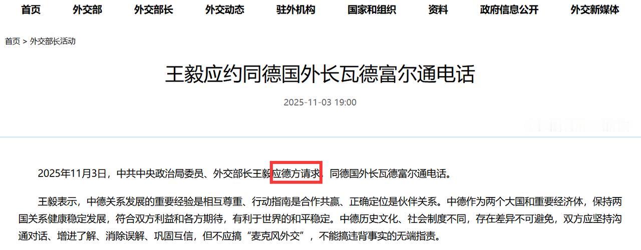 既然德国外长不识抬举,就得这样啪啪打脸!和王毅外长通电话,被咱们外交部直接表明是
