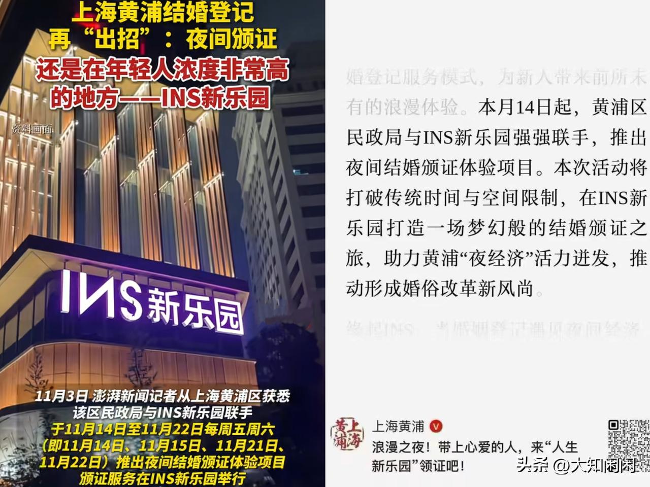 一觉醒来, 上海的丈母娘要慌了, 为啥呢? 原来上海黄浦区民政局与INS新乐园联手,于2025年11月14日至11月22日期间的每周五、周六推出夜间结婚颁证体验项目。不过,新人必须先在黄浦区民政局领证,然后自愿选择是否前往INS新乐园参加颁证仪式,活动现场没有实际的登记领证环节 。 这消息一出,丈母娘们估计心都悬起来了,生怕女儿在夜店稀里糊涂就把自己嫁咯,估计都琢磨着要把证件藏好。照这趋势,以后民政局说不定真会设在商场、景区这些年轻人扎堆的地方。 不过话说回来,结婚虽是大事,但年轻人也有自己的考量。说不定俩情相悦的小年轻,就差这么点冲动,就能成就一段美好姻缘。我觉得这创新之举,也给结婚登记添了别样浪漫。大家觉得这做法咋样,是点赞还是觉得不靠谱呢?