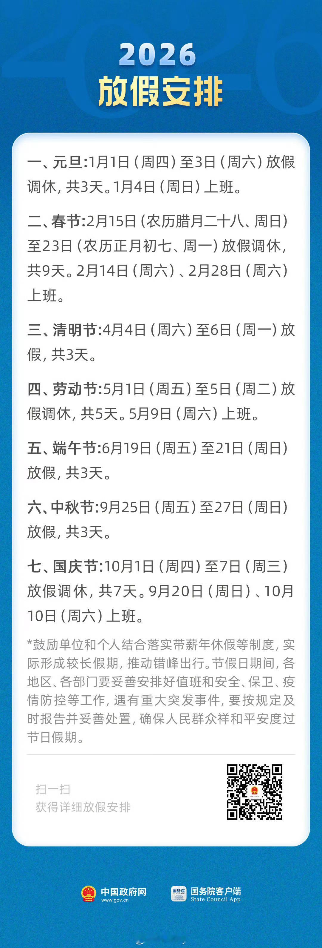2026春节放9天假 25年还没过完,26年的放假安排来啦。[开学季]