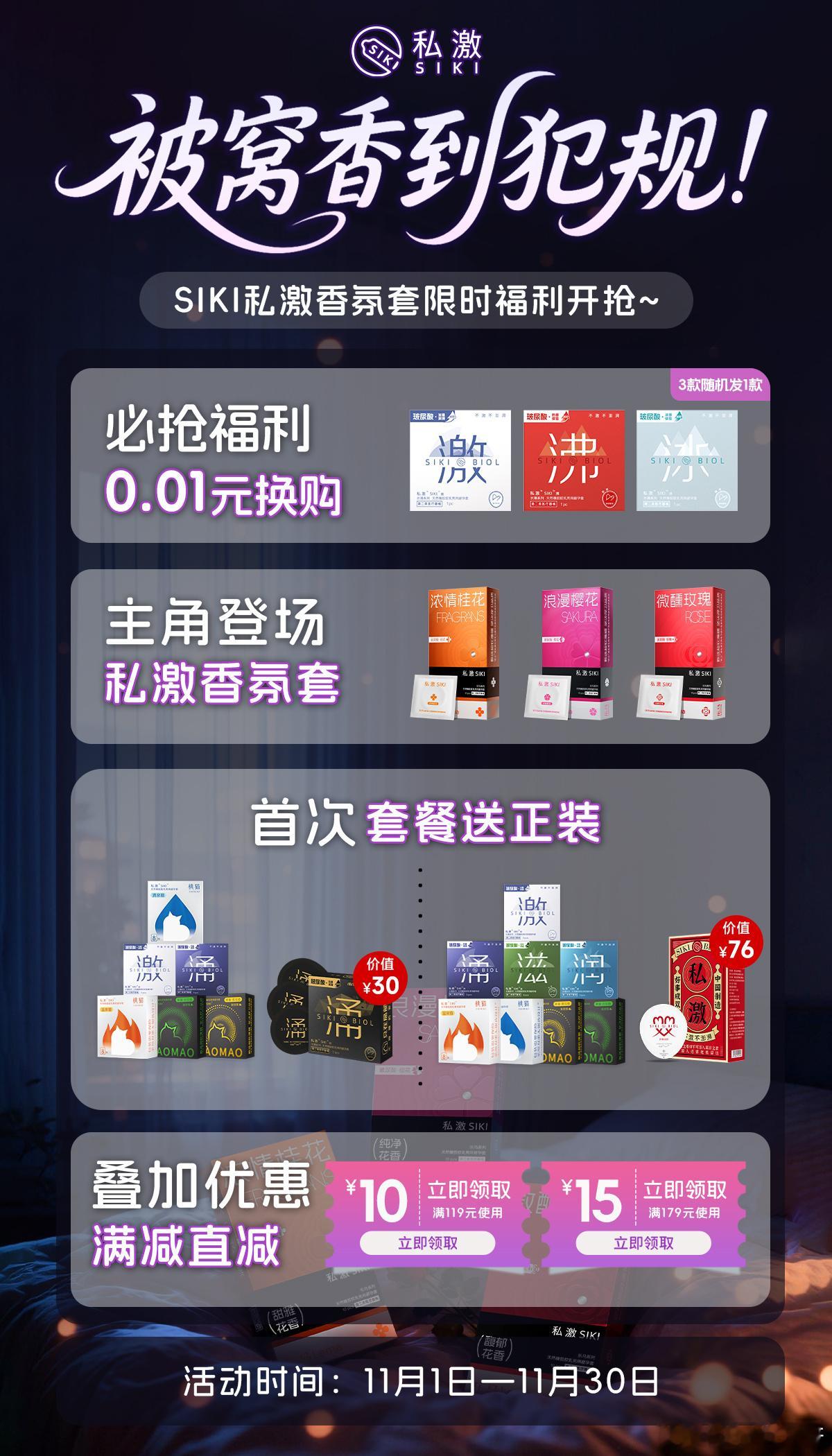 私激11月活动它来了!✅满减持续上个月的满119-10,满179-15✅0.01