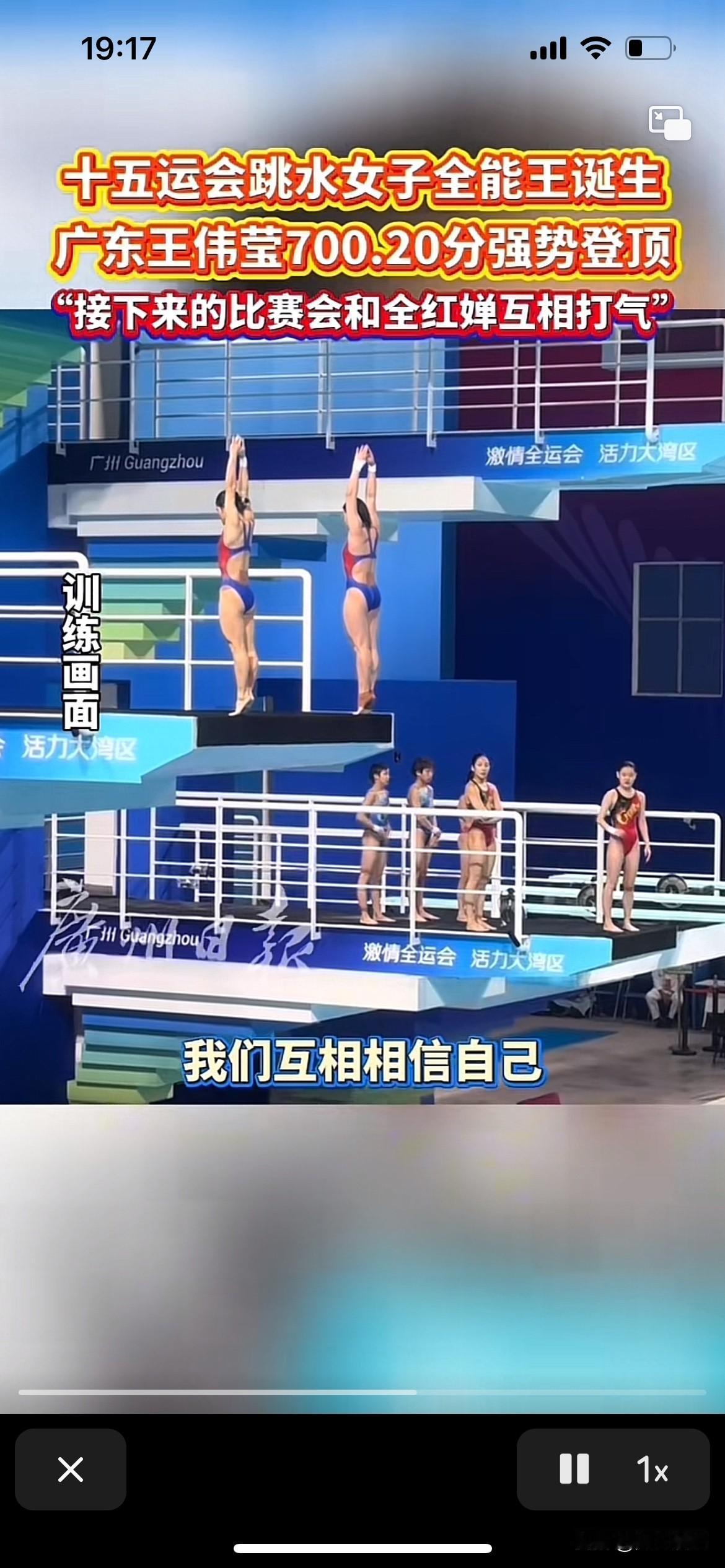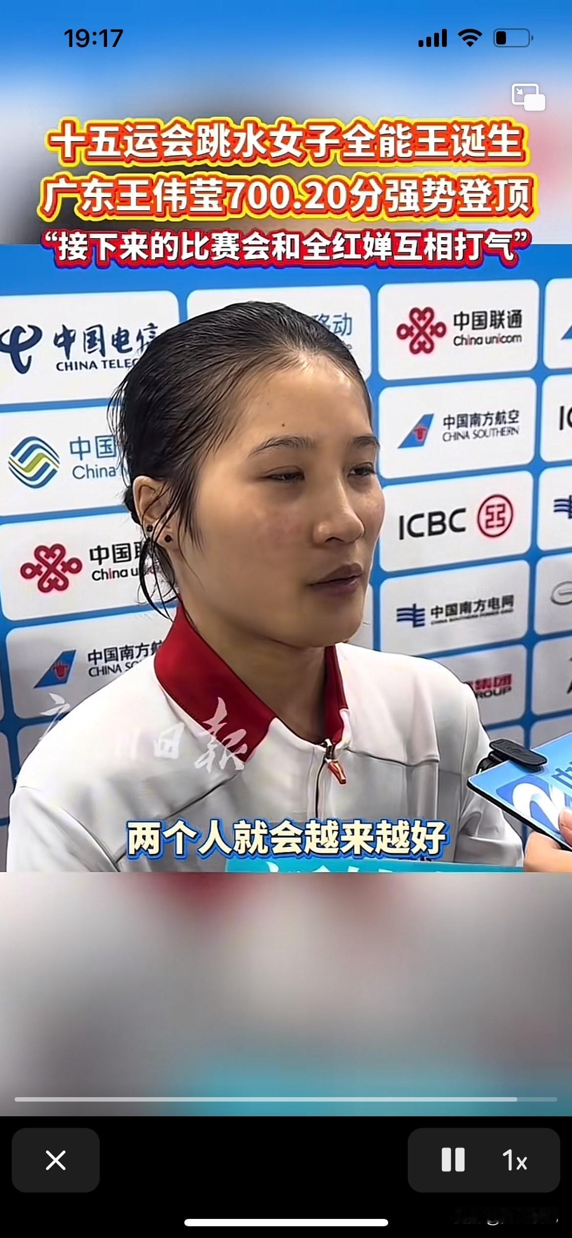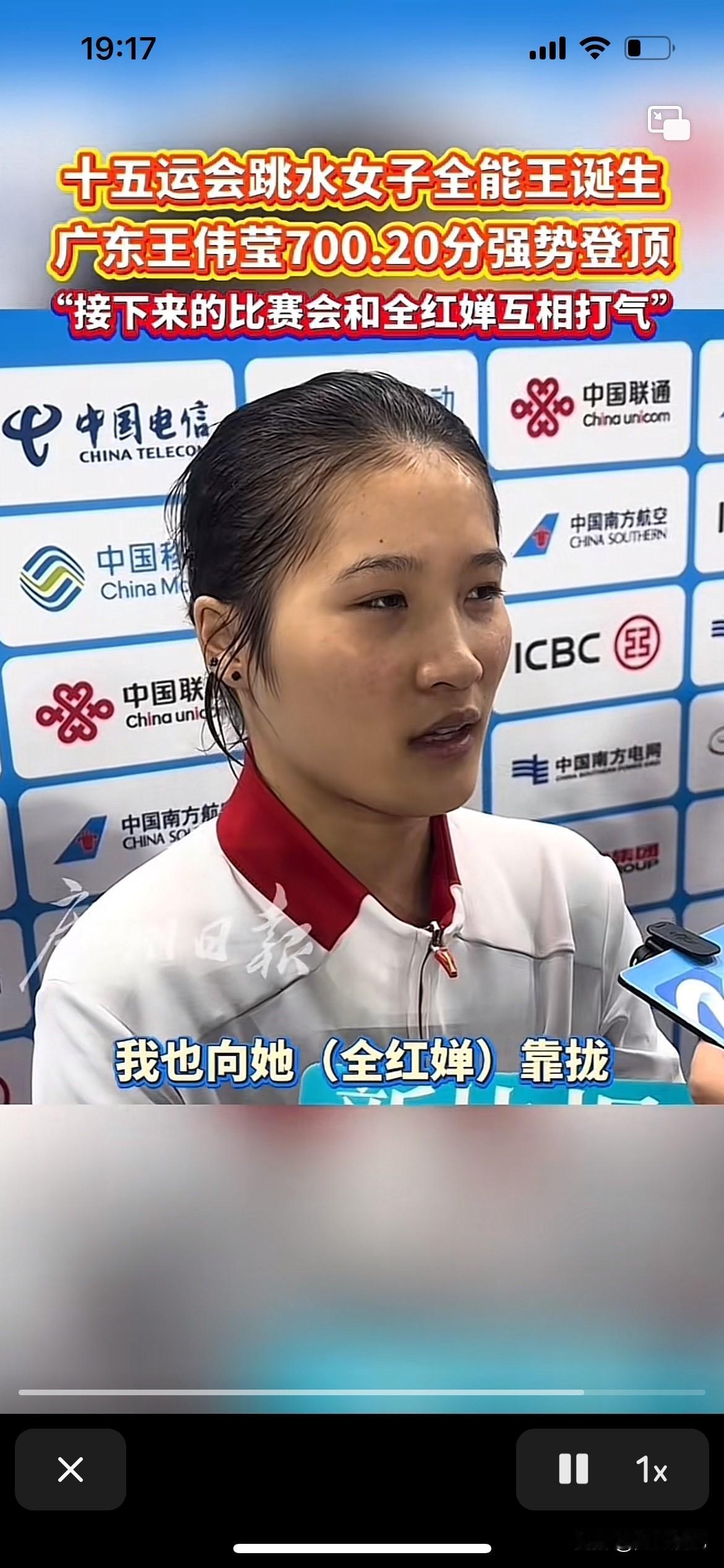 谁说王伟莹不如全红婵的,其实就是王伟莹谦虚而已,全运会全能冠军,怎么样也比全红婵厉害,就是她的名气没有全红婵那么大而已,论跳水水平还是比全红婵厉害的,全红婵只会10米跳台,其他的她跳不了,她的身体硬硬的,没有办法跳。 不过都是队友,不用比较那么多,好的队友,就是相互鼓励的,你也一样优秀,全宝拥有你们这样的队友会一直快乐的跳下去。