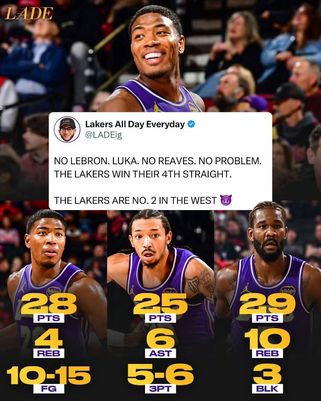 美媒说湖人今天没有三巨头,却总有新三巨头站出来。 詹姆斯不在,东契奇不在,里夫斯也不在。 可是艾顿29分,八村塁28分,小尼克史密斯25分,又是一个三巨头组合。 我认为这是NBA独有的机制,湖人连续几年不行,现在终于通过选秀交易,让球队更加强大了。 前几年火箭和马刺还在垫底呢,再往前雷霆由于威少离开也排名靠后。 美国体育就是强几年,弱几年,只要运营好再度崛起很正常。 湖人上次夺冠是2020年,已经过去好久啦,新湖人剑指总冠军,不是梦,阵容很强大。[灵光一闪][赞]