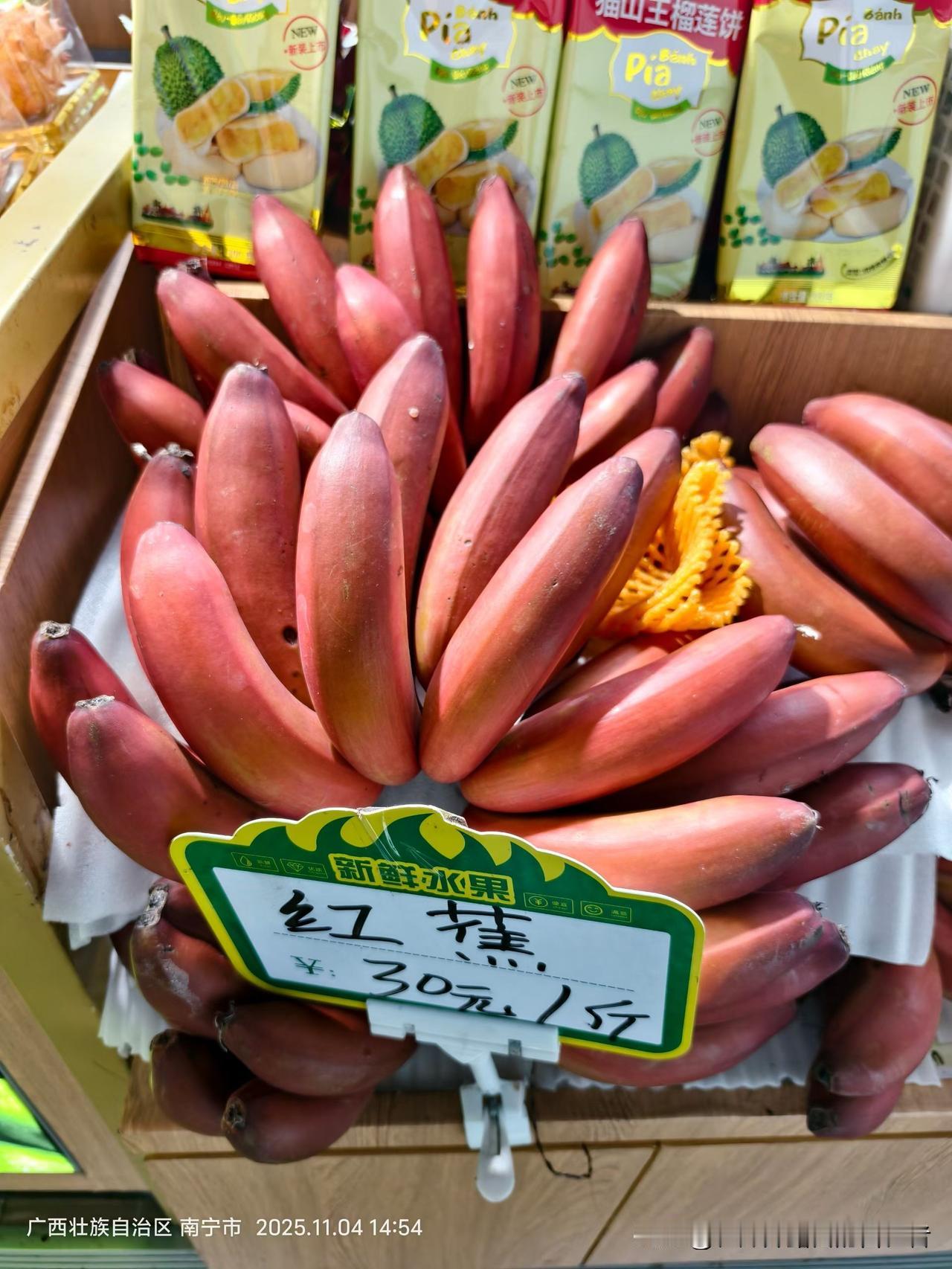 来越南这趟可开眼了!在南宁的水果摊儿上,头一回见这红通通的香蕉,摊主说是“红蕉”,30块钱一斤呢。 我老家河南只有黄皮香蕉,这红蕉模样真别致,跟咱平时见的完全不一样。咱河南人就爱新鲜事儿,这红蕉算是给我上了一课,原来香蕉还有这颜色!出来逛逛就是好,总能发现不一样的惊喜,这趟没白来,长见识了!