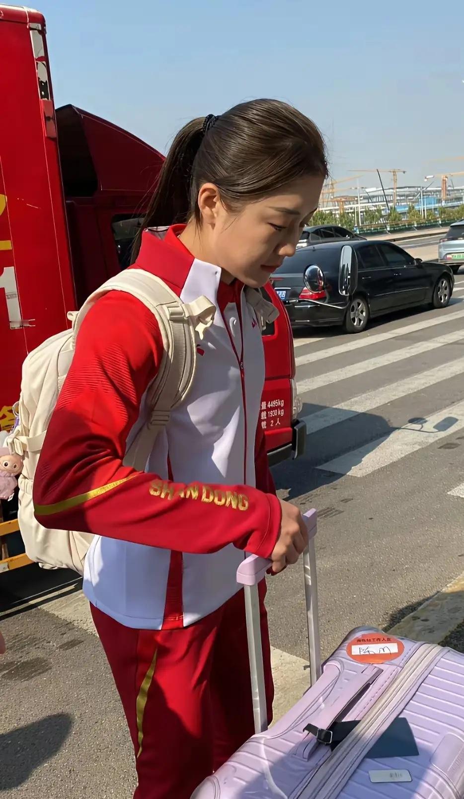 陈梦身着山东队队服出发全运会啦!