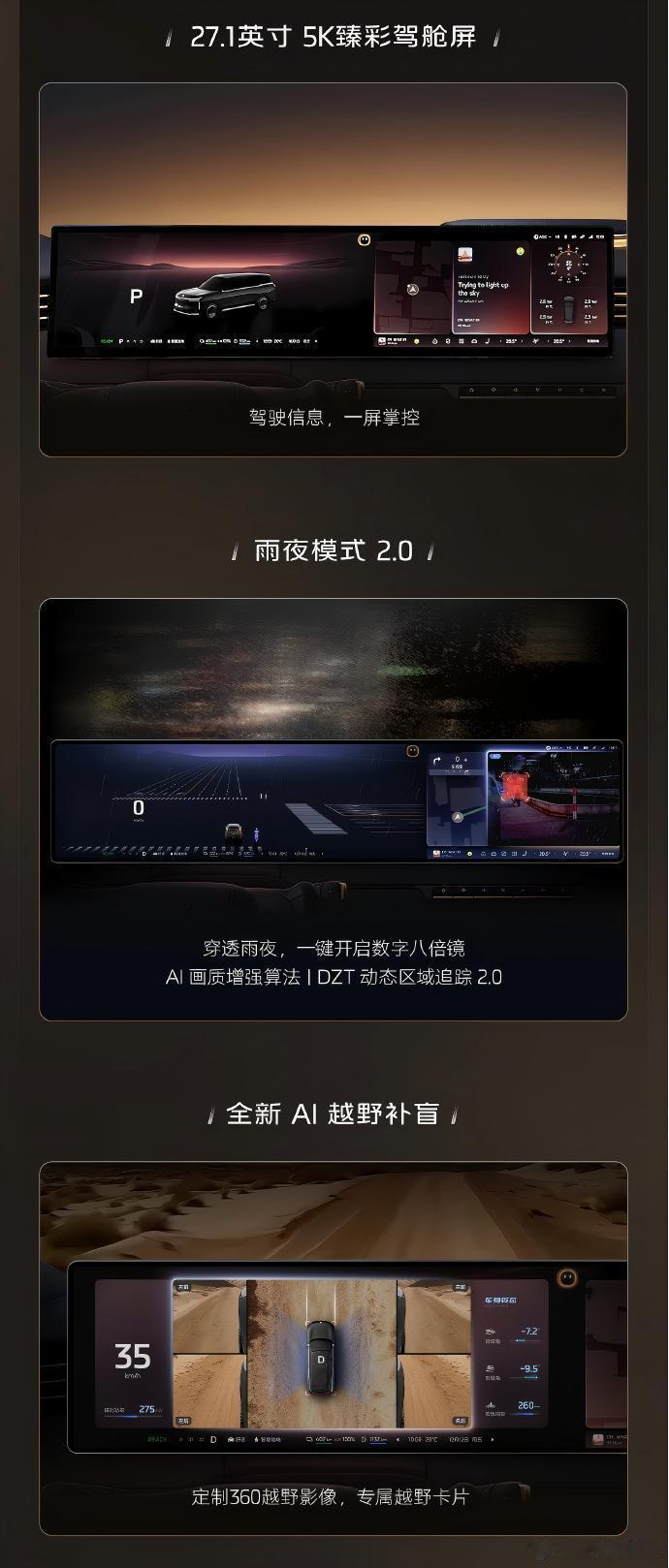 27.1 英寸 5K臻彩驾驶屏+雨夜模式 2.0+AI 越野补盲