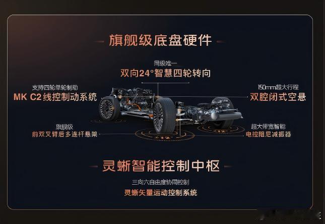 -灵犀数字底盘:前双叉臂后多连杆悬架+双腔闭式空悬