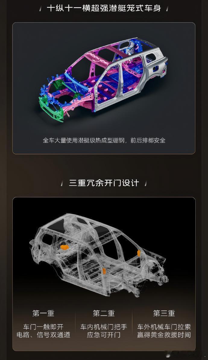 -安全:十纵十一横超强潜艇笼式车身+三重冗余开门设计