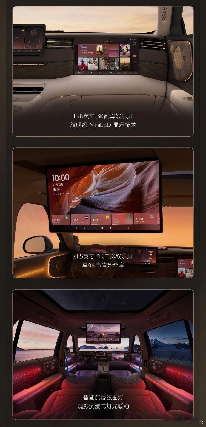 15.6英寸 3K副驾娱乐屏+21.5英寸 4K二排娱乐屏 智能沉浸氛围灯
