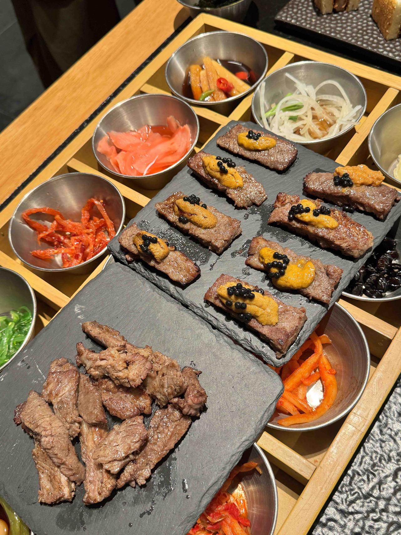 为什么还不是你的菜一进门就被高级感拿捏,暖黄灯光超有氛围~ 必点的海胆大王牛排吧 然后可以说海胆个大鲜甜 配合鱼子酱和牛肉 一口下去幸福感爆棚 店员全程帮忙烤肉,还送15宫格小菜、无限续南瓜羹,服务贴心到飞起~