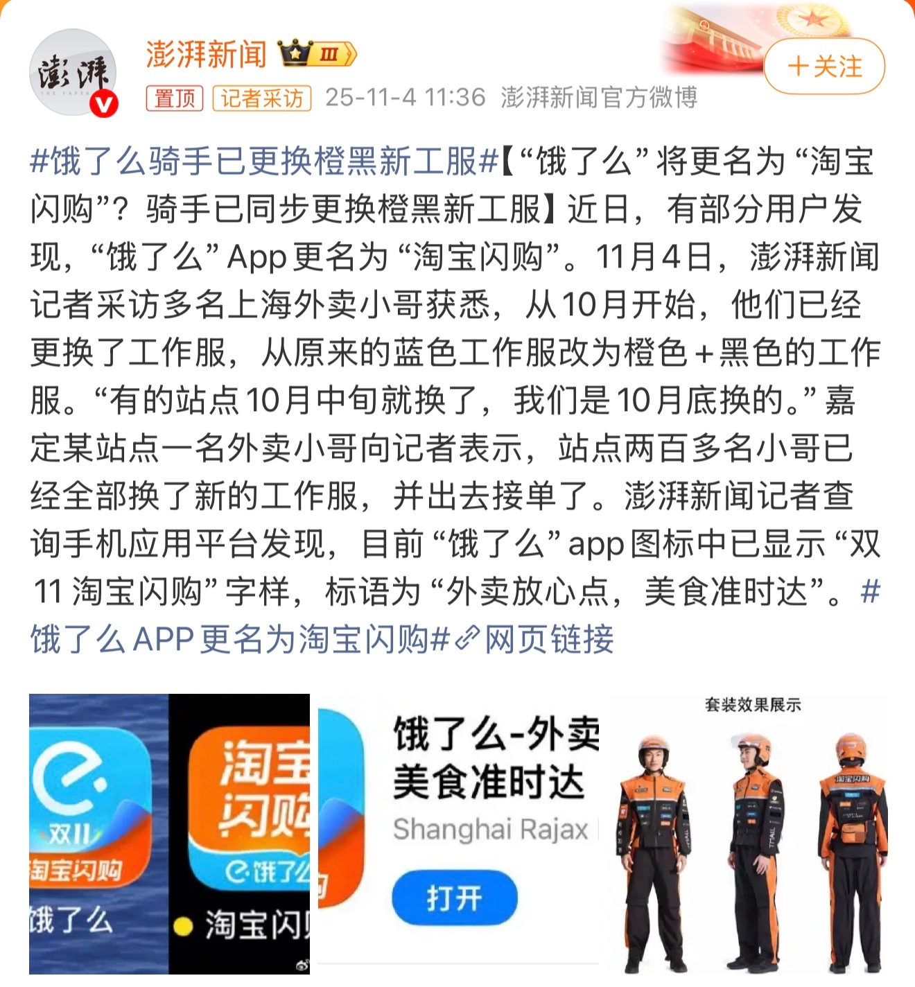 这次饿了么换新工服,橙黑配色确实扎眼,路上老远就能认出来。