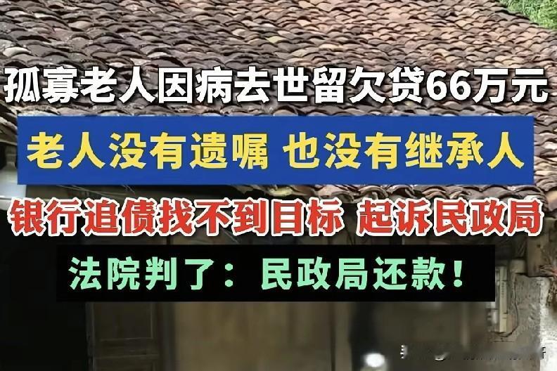 上海孤寡老人欠款66万银行胜诉! 事情是这样的,上海一名孤寡老人生前以房产抵押向银行贷款66万元,去世后无遗嘱、无继承人,贷款逾期。银行通过法律程序申请指定民政局为遗产管理人,随后起诉要求以遗产清偿债务 。 法院认定民政局作为遗产管理人,需将老人房产拍卖,然后由民政局补齐欠款。 话说如果是老人在银行存了66万呢?银行会怎么处理呢?