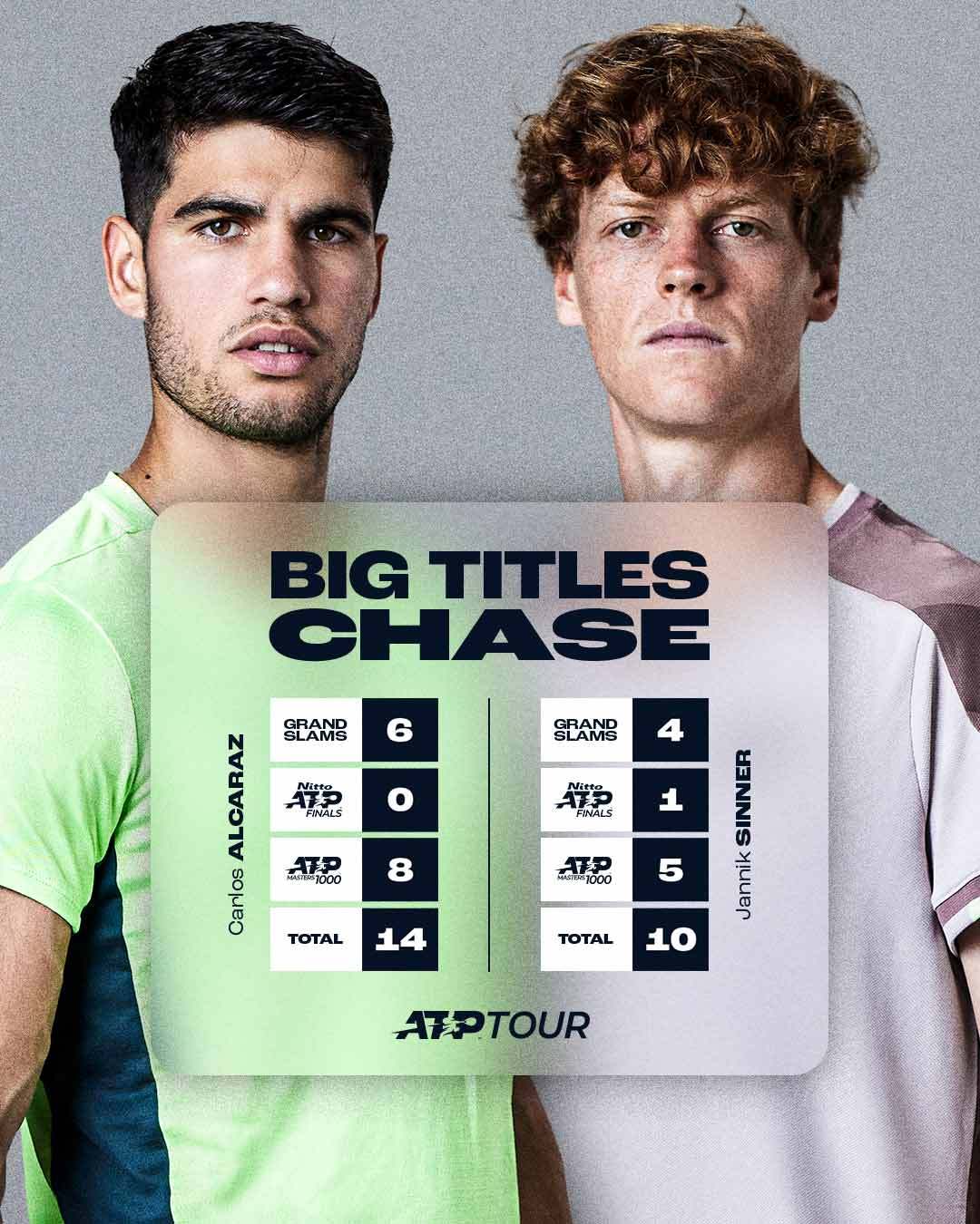 阿尔卡拉斯和辛纳的大赛冠军数PK