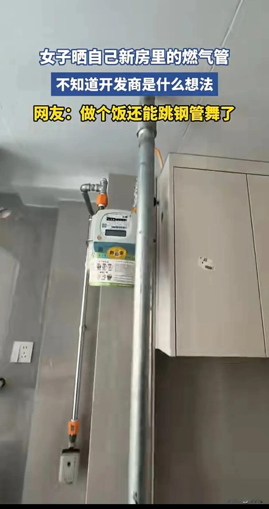 女子晒自己新房里的燃气管,吐槽开发商是什么想法,灶台旁边还立了一根燃气管。厨房里有根钢棍,这打算做饭累来段钢管舞? 一般情况下,燃气管不都是在厨房小阳台外面吗?再看,自己网暴自己,还怪开发商。装修的时候把厨房和小阳台之间的墙拆了,把小阳台改成了厨房,这是偷平方。 且不说燃气管放置室内,存在一定安全隐患,私自更改房屋结构也是违法的。 想法很好,一边做饭一边还能跳钢管舞。就是这改造,举报到住建局,应该要整改、罚款吧!