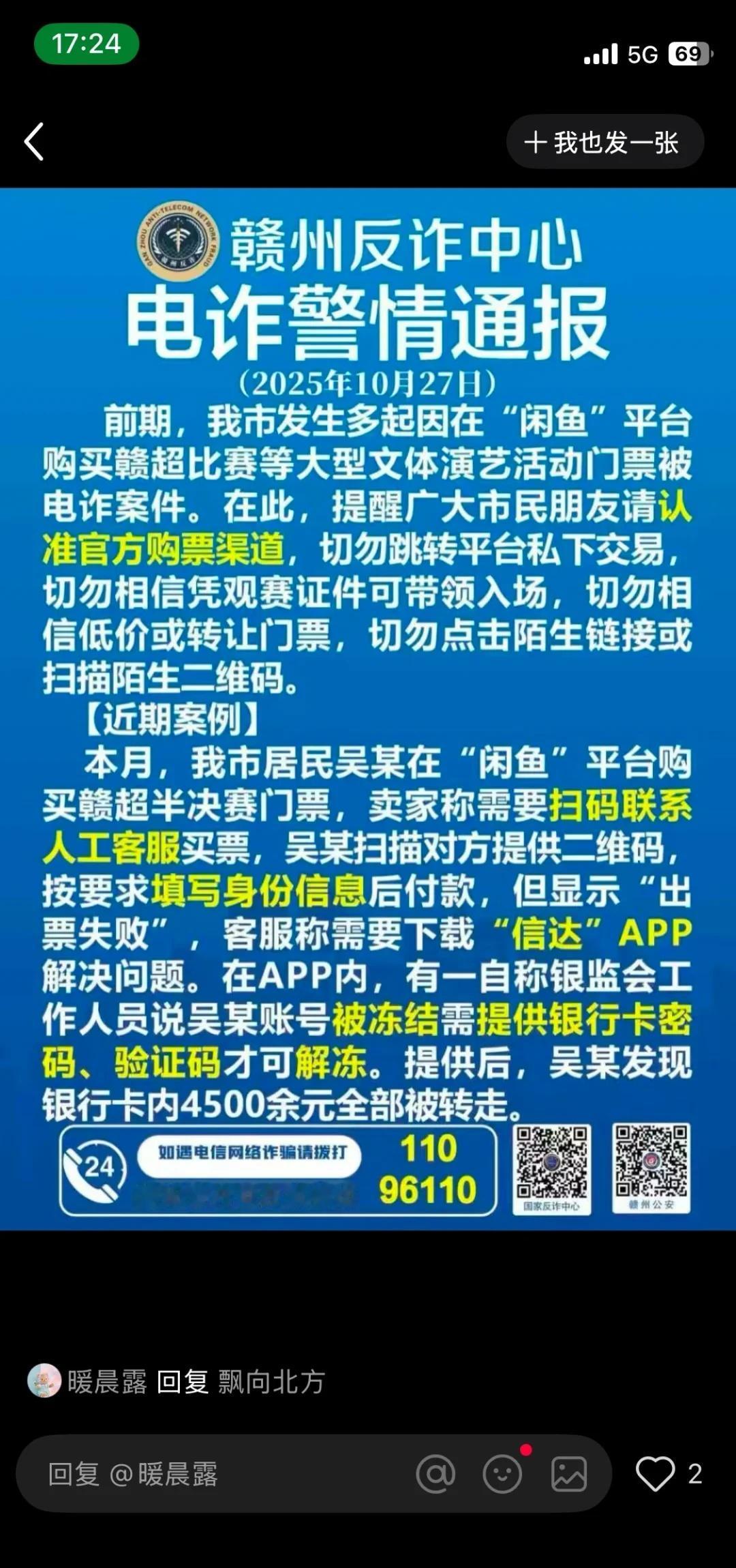 在闲鱼买赣超票被骗了300 跑去报警发现不止我一个人被骗,套路基本跟图二一样[再见]