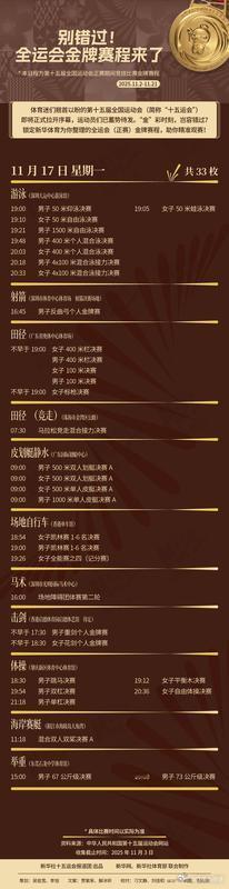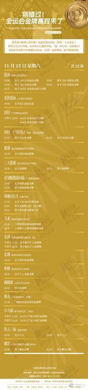 即将正式拉开序幕,运动员们已蓄势待发。“金”彩时刻,岂容错过?为你整理的全运会(正赛)金牌赛程,助你精准观赛!V观全运会