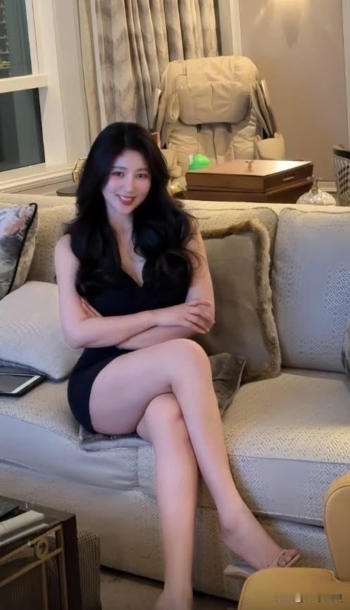 优雅黑裙,微笑如花,居家时光的美好瞬间。气质黑裙