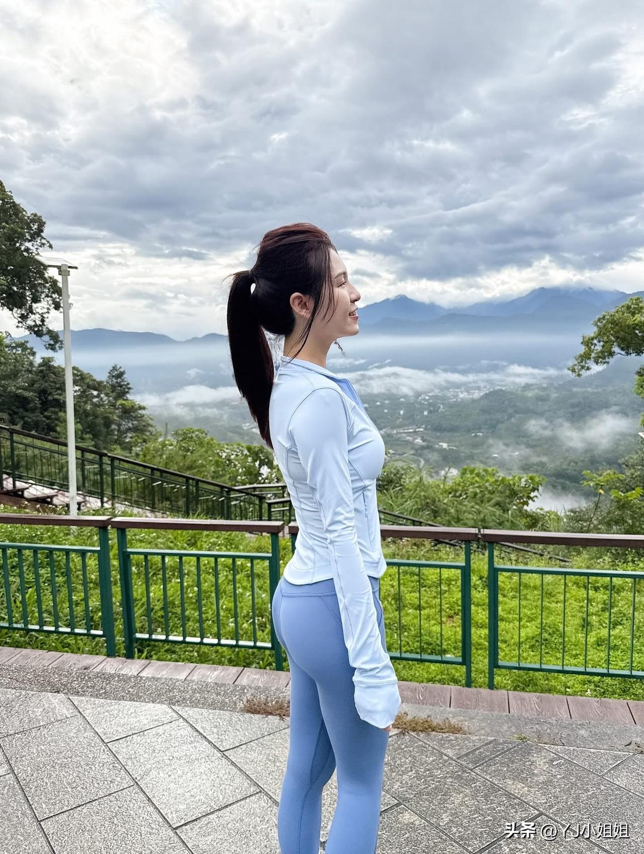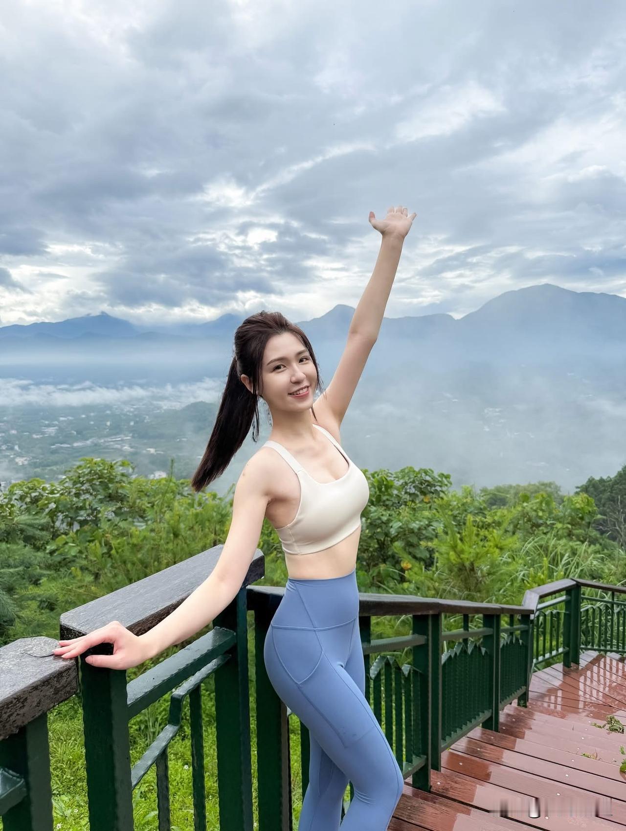 日出下的城市天际线,运动女孩在山顶迎接新一天!🌅🏃♀️🏙️喜欢健身的女人