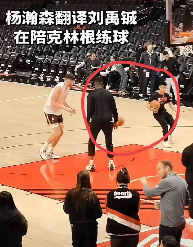 杨瀚森还在忙着吃夜宵,打不上球,他的翻译却悄悄努力,已经进入教练组开始工作了。