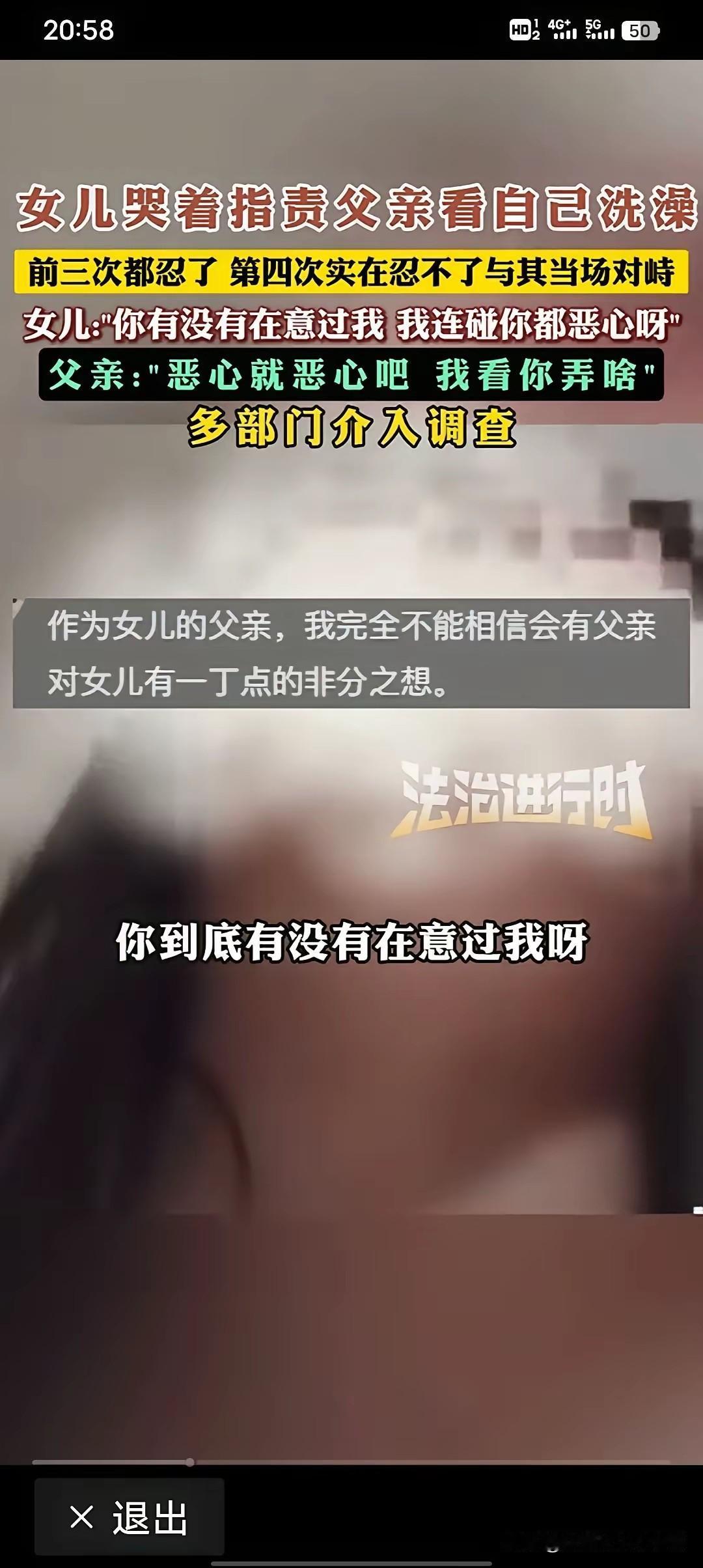 事发河南郑州荥阳市,一位十四岁女生在小红书上网爆她的父亲,起因是因为她的父亲去洗手间拿牙膏或者递毛巾的时候,没有考虑到她女儿正在洗浴,所以她女儿都控诉他偷看了她女儿洗澡,她的女儿今年是14岁,,因为我自己也带初中生嘛,女孩子一般在13岁,14岁就开始有月经,第二性征开始出现,也就是比如说乳房,或者说是臀部,或者说是一些生理特征就开始发生很大的变化,她们的心理也比较敏感,一般在初一,初二的时候都开始学习生物学,开始学习男女生理结构的不同,所以说女孩子有这些强烈的反应也很正常,但是作为父亲呢可能是在北方生活习惯了,所以说很多并没有在意这个女孩的感受,就感觉是自己的亲女儿,他也不可能有其他方面猥猥亵的想法,但是这个女儿的话就比较敏感,就网暴了自己的父亲。 因为在上世纪六七十年代或者七八十年代很多家庭受的空间所限,那很多人就是一家人都在一个澡盆子里洗澡!然后的话那个时候也没有这种强烈的性别观念,但是现在的话,因为社会在进步,大家这个觉得女大避父,儿大避母等等这些观念的话,又重新给拾起来了,但是这个女孩因为太年轻也没有想太多,家丑不可外扬,她这样一说以后让父亲怎么在单位做人呢?她自己怎么去上学呢?觉得自己的身子都被父亲看过了等等,她这不是网暴自己吗?母亲站在中间也很尴尬,我觉得以后这个父亲可能会心灰意冷,就永远不会再管这个女儿了,因为她让父亲伤透了心!