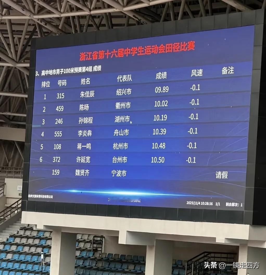 男子百米跑到9秒89是什么概念?中国选手目前只有苏炳添一人跑进过9秒90以内,在昨天进行的第十六届浙江省运动会男子百米预赛中,参赛选手基本都是中学生,结果第一名朱佳辰在逆风状态下竟跑出9秒89的惊人成绩,第二名也达到10秒02,难道这位谢震业的绍兴小老乡要一飞冲天了?最后经核实,原来是计时器出了问题,所有选手的成绩都加上1秒,成绩一下变成了没啥含金量的10秒89,白白让大家空欢喜一场