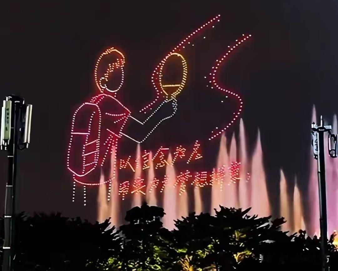 昨天是孙颖莎的25岁生日,晚上有1104架无人机在广州的夜空拼出孙颖莎的挥拍动作