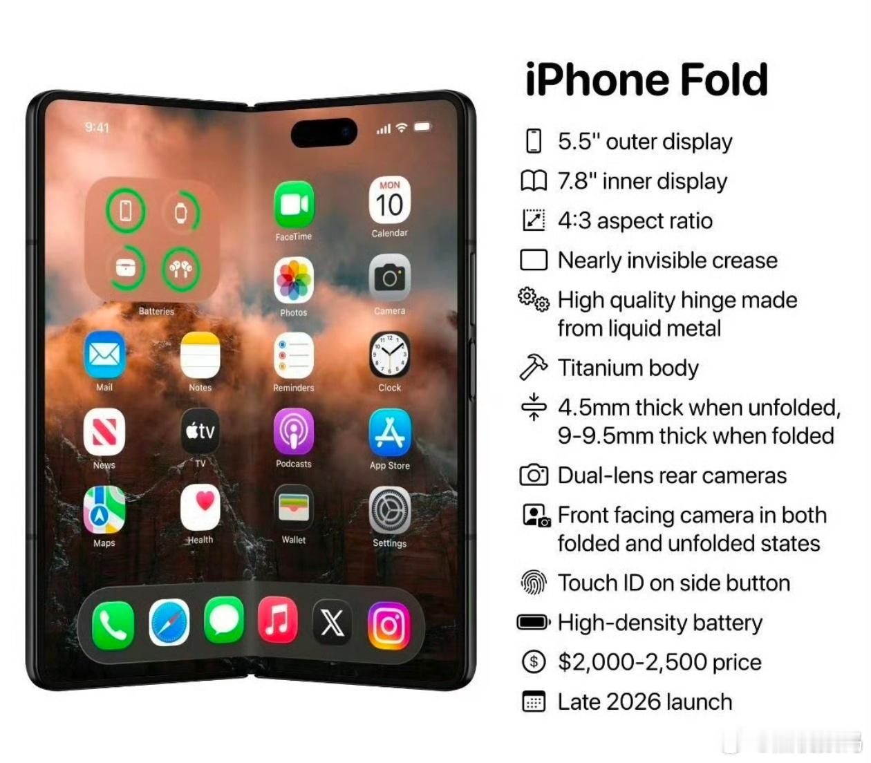 折叠屏iphone明年亮相 iPhone 折叠屏暂称(Flod)要亮相了,预计在2026年秋季,应该与iPhone18一起与大家见面,让我们一起期待吧