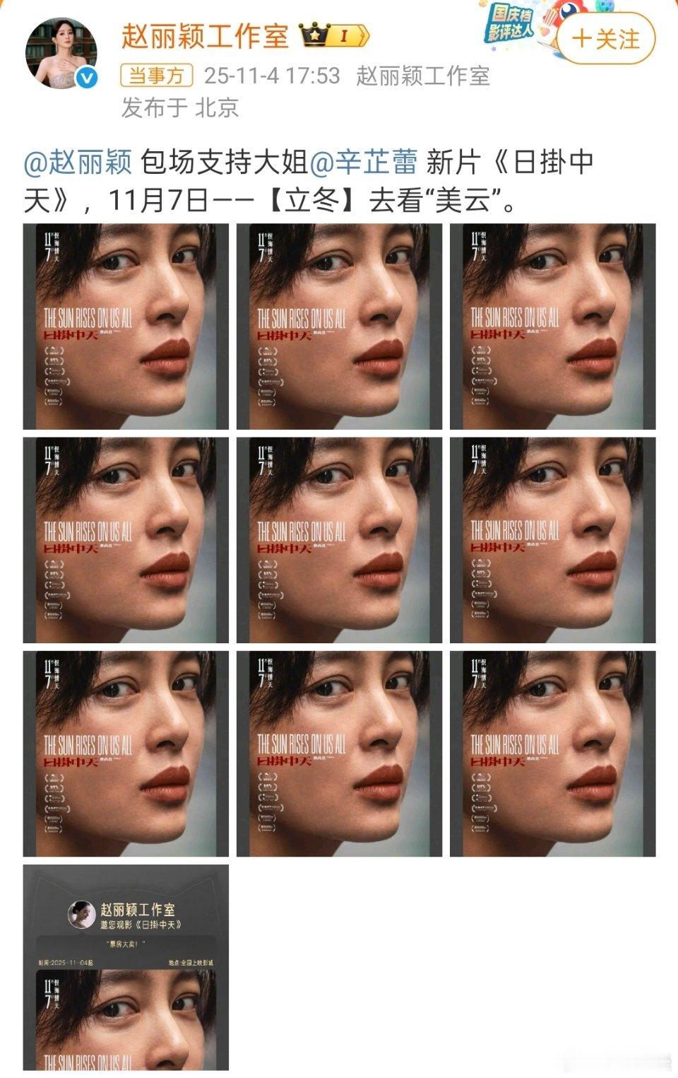 赵丽颖连包10场支持辛芷蕾新片赵丽颖包10场力挺好姐妹辛芷蕾的新电影,人生有个这