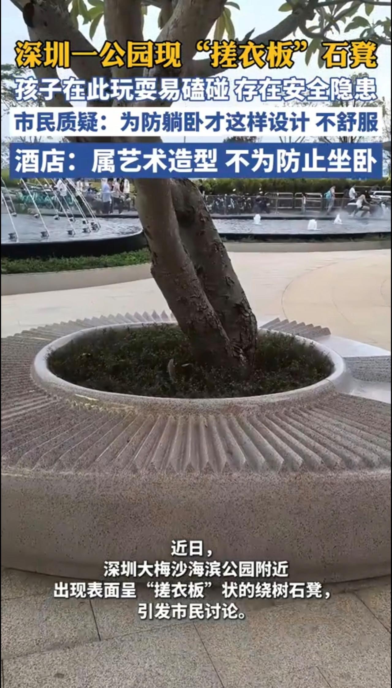 深圳一公园附近现“搓衣板”状绕树石凳[捂脸]