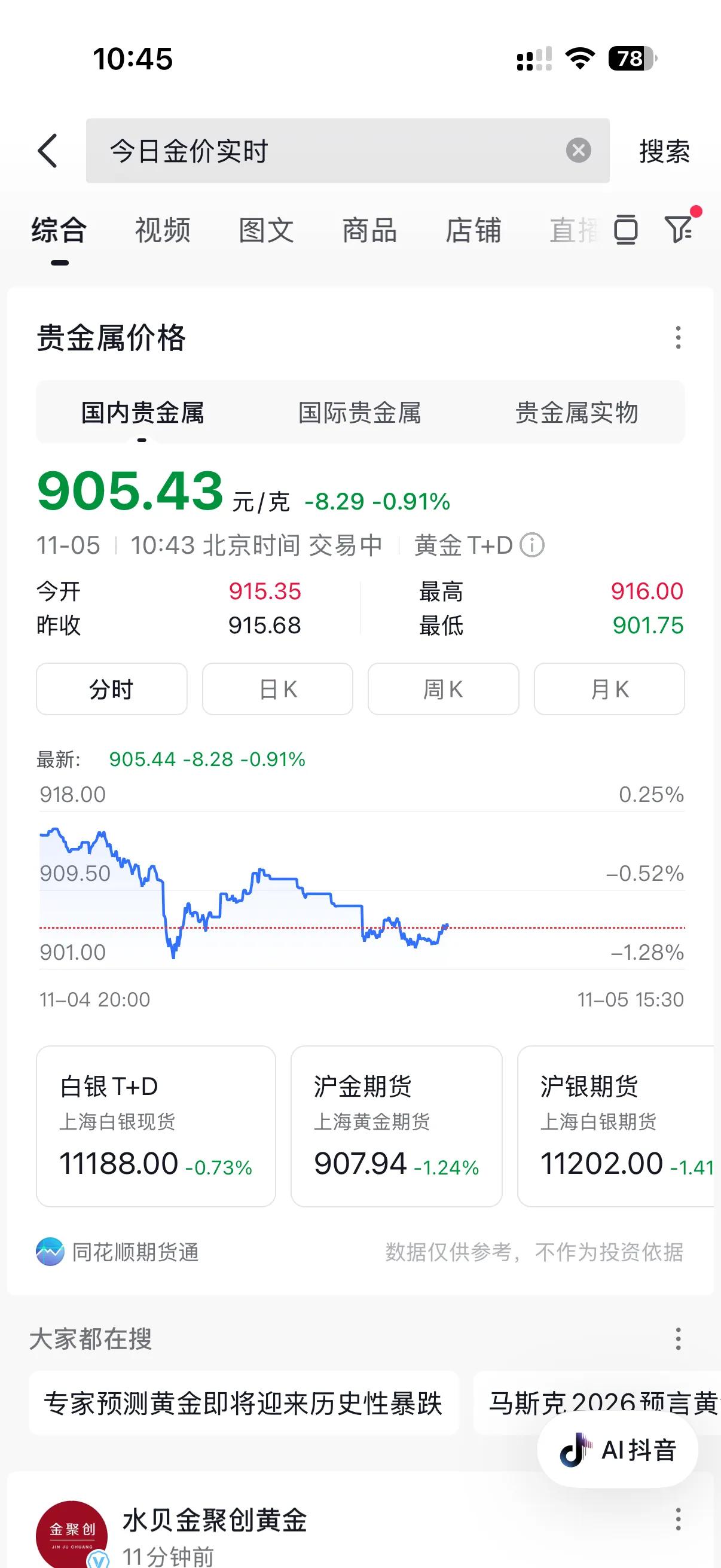 黄金跌了,而且跌的还不轻! 黄金价格下跌了,而是是奔着900的关口去的! 但是因为黄金增值税的原因,国内实物黄金却没有受到影响,反而是出现了小幅的上涨! 可以说因为黄金增值税的出现,反而是让黄金实物交易出现了短暂的停顿,因为现在还没有具体的黄金增值税的权威解读和实施,不少黄金商家还是选择了下架网上黄金物品,线下的黄金商家则是选择上调了黄金实物和饰品价格! 相信向这样的国内黄金价格和网上的国际黄金价格趋势不同将会存在!未来很长一段时间的