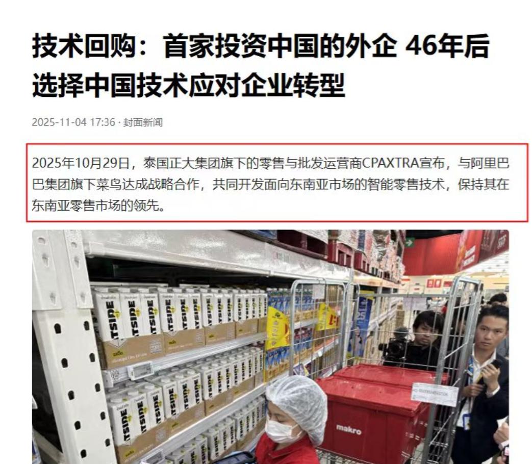 今天看到一条来自泰国的消息,让我内心久久难以平静! 日前,泰国正大集团旗下东南亚零售巨头CP AXTRA宣布和菜鸟达成科技合作,将从菜鸟引入最先进的数字供应链技术带回泰国,以此来保持其零售产业在东南亚的领先地位。 这消息就很不简单了,值得细说。 先想想CP AXTRA是啥来头,它是泰国正大集团旗下的零售巨头,在东南亚开了2700多家门店,像万客隆、莲花超市都是它家的,在当地零售业说一不二的角色。 更关键的是,正大集团是改革开放后第一家来中国投资的外企,早年还是咱求着人家来带资金、带技术,现在倒过来了,人家主动找上门来买咱们的技术,这反差简直太明显了,这不就是咱中国科技变强的铁证嘛! 再看看他们合作最实在的效果,就说那个叫iWMS的拣货包装系统,俩人一联手弄出来,在万客隆门店一用,拣货打包的效率直接涨了140%。 以前店员在大超市里找货得绕半天,现在按系统提示走,一下就找着了,速度快了一倍还多,还有配送这块,CP AXTRA自己有4000辆车,以前一天顶多送1.5万单,现在用上菜鸟的运输管理系统,一天能送10万单,这运力翻了多少倍啊! 东南亚现在线上购物的人越来越多,顾客还催着要当日达、三小时达,没有这技术根本扛不住,怪不得CP AXTRA着急找菜鸟合作。 人家为啥非得找菜鸟?CP AXTRA的数字官自己都说了,他们在全球找了一圈供应商,最后就认准菜鸟了。 因为菜鸟的系统经受过双十一上亿订单的冲击,稳得很,换成别的根本扛不住这压力。 咱国内每年双十一物流都能顺畅走下来,靠的就是这些真本事,现在这套本事出口到国外,照样好用,这就是硬实力啊! 而且这合作不止眼前这点东西,他们还在弄AI货架陈列,用人工智能帮着摆货,以后超市里的商品怎么摆顾客好找、拣货员好拿,系统都能给建议,库存也能算得更准,不会再出现想要的东西没货,不好卖的堆一堆的情况。 CP AXTRA的老总都说了,这只是开始,以后还要跟阿里、菜鸟探索更多合作,明显是尝到甜头了。 再说说菜鸟,这可不是第一次把技术卖到国外了,现在他们的科技产品都落地27个国家了,搞了800多个项目。 越南的邮政分拨中心、巴西的跨境物流枢纽、欧洲的分拣机,全是菜鸟造的,就说越南那个分拨中心,双十一期间包裹堆成山,照样能自动分拣,准确率还超过99%,当地负责人都说这是他们最先进的设备。 巴西那个更厉害,分拨效率直接提了7倍,一天能处理近百万件包裹。 以前总听说中国卖衣服、卖家电到国外,现在不一样了,咱们卖的是技术、是方案,这档次完全不一样了。 正大集团早年给咱带来过帮助,现在咱用自己的科技反过来帮他们发展,这一来一回的,多有意义。 而且东南亚市场那么大,CP AXTRA又是当地的龙头,这次合作做好了,其他国家的企业肯定也会跟着来学、来合作,这就是良性循环。 咱普通老百姓可能不懂啥叫数字供应链,但能看懂效率提升、能明白技术好用,这就够了,以前总觉得国外的技术多牛,现在才知道,咱自己的企业早就悄悄把技术做到世界领先了。 菜鸟这事儿不是偶然,是这么多年持续投钱搞研发、在国内实战里练出来的结果,没有双十一那样的大场景磨练,哪来这么靠谱的系统? 所以说这消息真不是小事儿,它藏着的是中国科技从“引进来”到“走出去”的大变化,是咱国家实力实实在在的提升,看着以前帮过咱的外企现在主动用咱的技术,真心觉得自豪,这就是硬实力给的底气啊! 参考资料: CP AXTRA与菜鸟合作 联手推动零售科技发展 光明网 2025-10-31 15:31