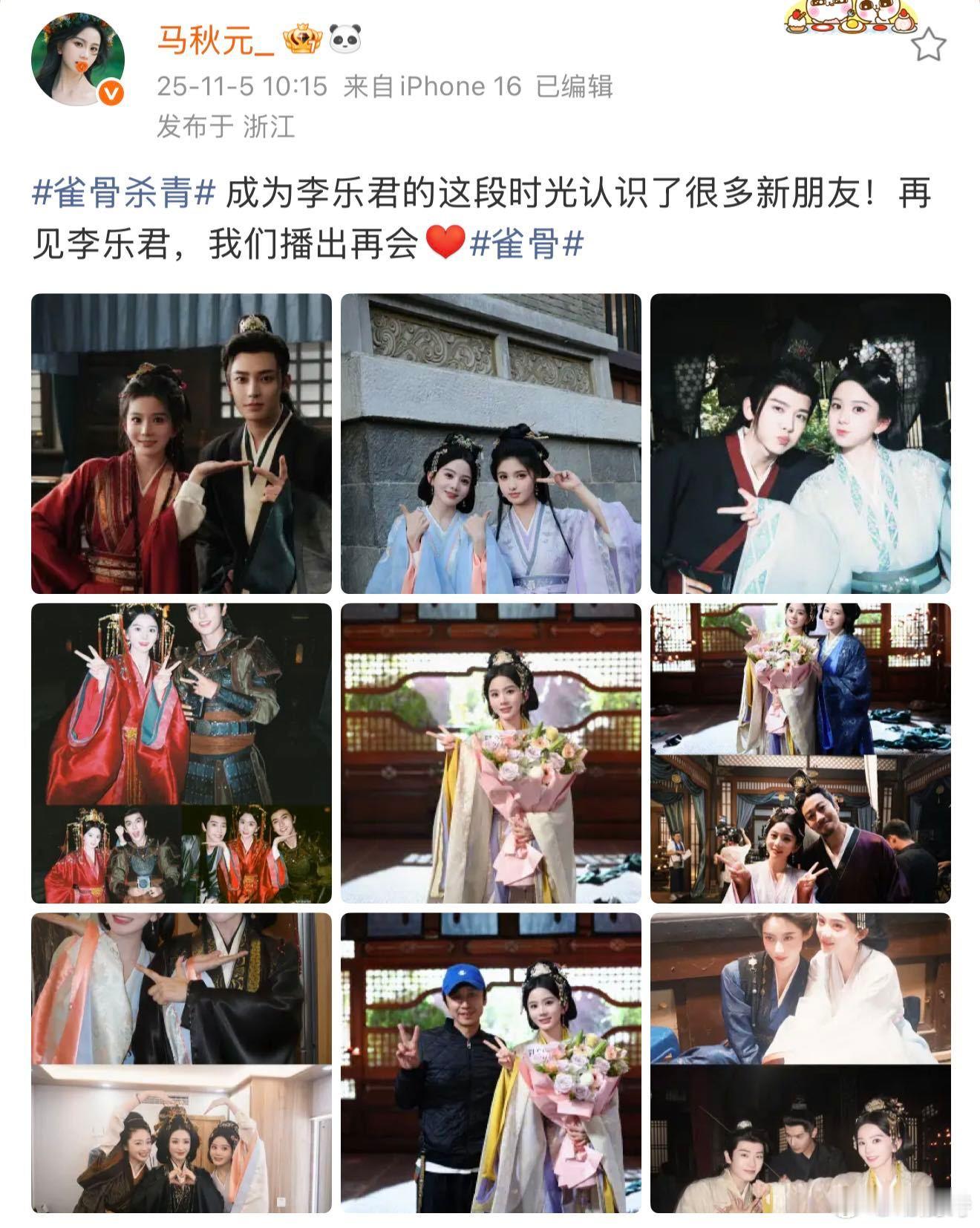 马秋元雀骨剧组plog马秋元一边开机一边杀青 这是一个关于成长与友情的故事,李乐君 的心路历程将永远铭刻在我们心中。即使暂别,我们都相信,未来的路会更加璀璨辉煌。 ​​​
