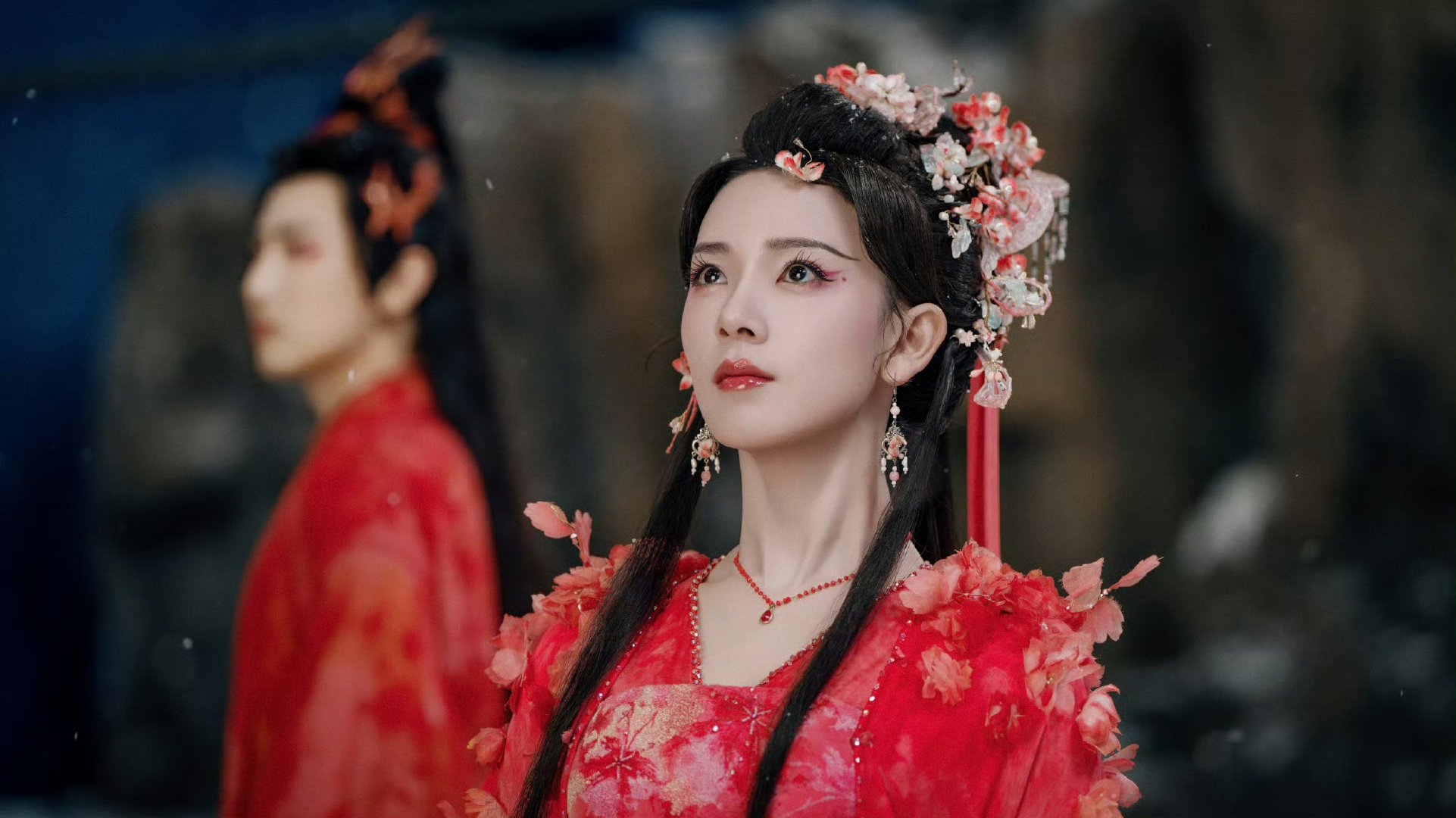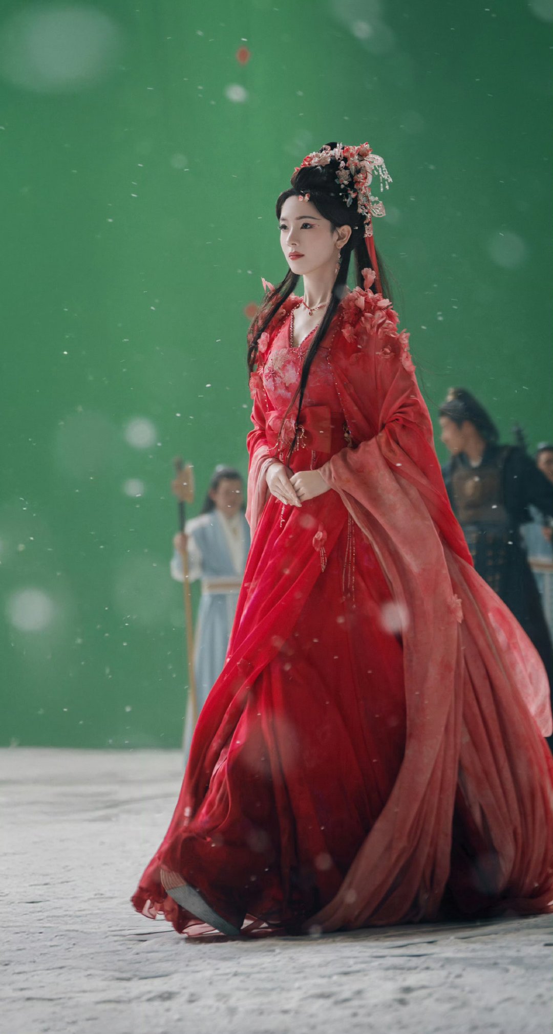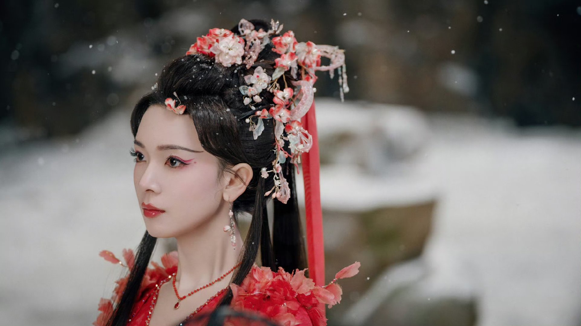 陈瑶红衣头饰陈瑶红衣雪景照陈瑶很适合走恶女这个赛道呀!