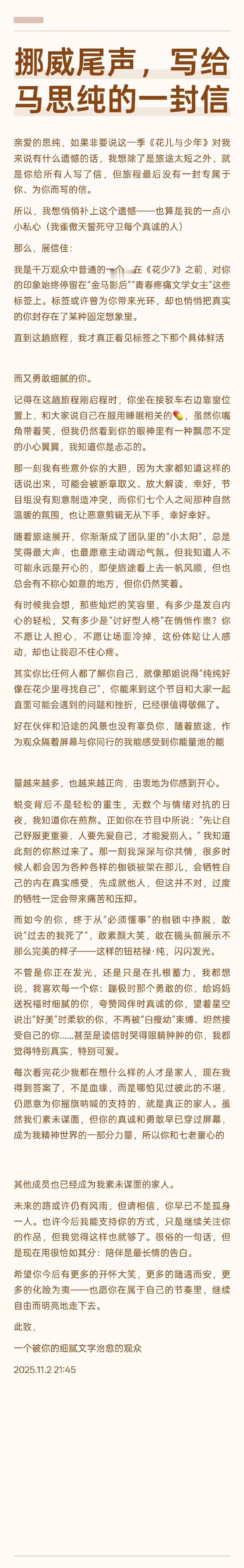 马思纯回信马思纯给花少观众回信 花少观众给马思纯写了封信,马思纯回信了,太美好了